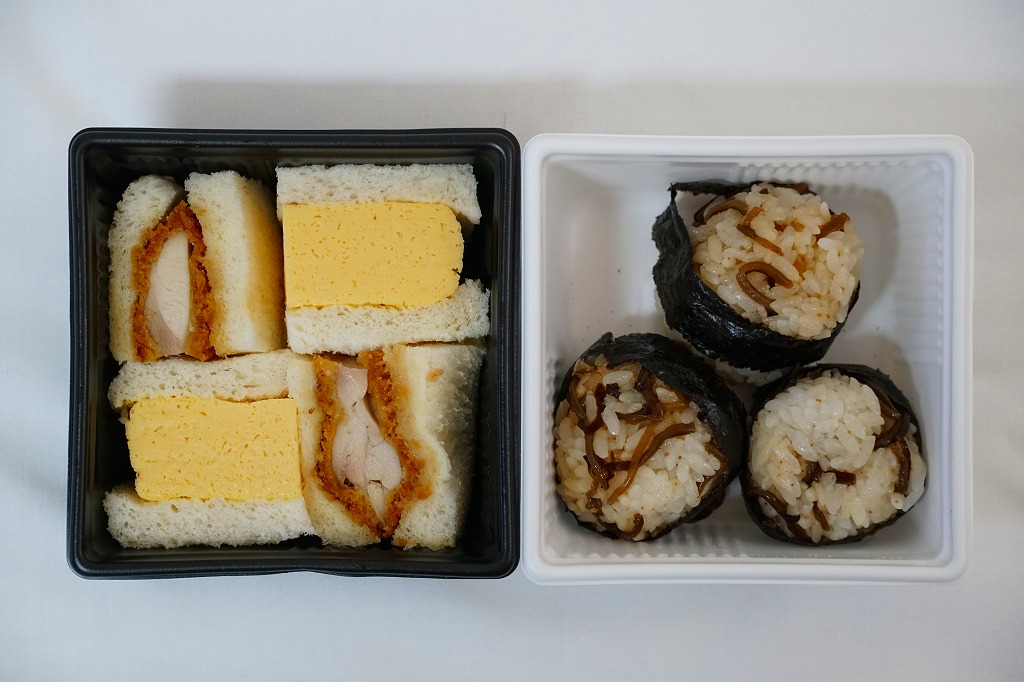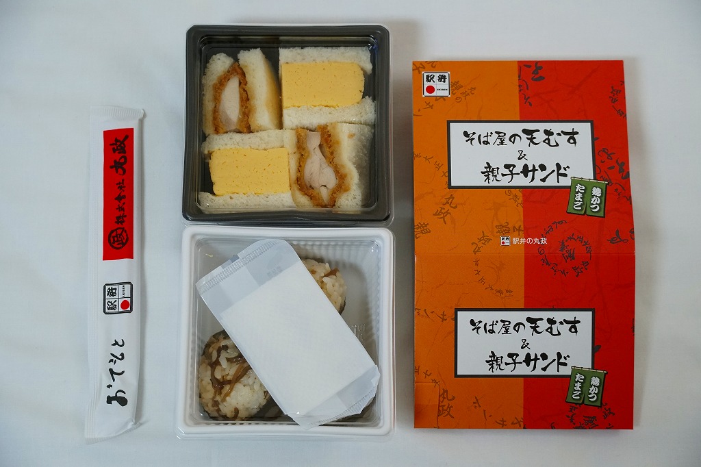 秋冬の駅弁大会シーズンに向けた、2023(令和5)年秋の新商品。既存の小淵沢駅弁「そば屋の天むす」「八ヶ岳高原たまごサンド」「甲州かつサンドとり」の組合せ。実在する天むすの袋と実在しない親子サンドの柄を持つスリーブに、天むす3個を収めた白いプラ容器と、鶏カツサンドとたまごサンドを2切れずつ収めた黒いプラ容器を、重ねてはめる。軽食の分量で3種の駅弁を楽しめるまとめ売り。駅で売られるかどうかは不明。