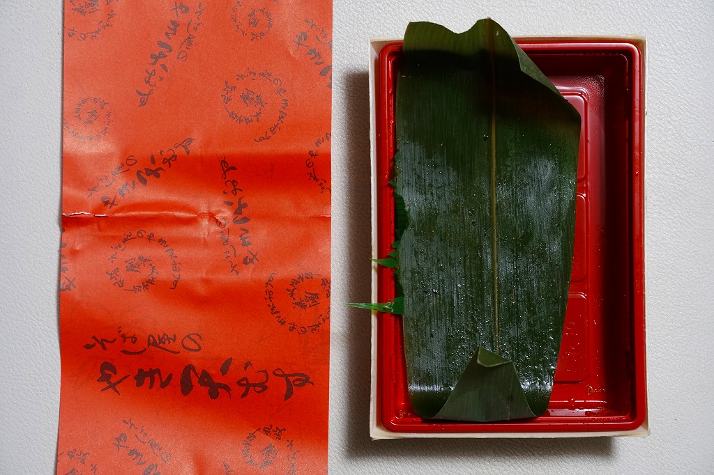 2014(平成26)年8月9日に購入した、小淵沢駅弁の包装紙。中身は上記の2016年のものと同じ。当時は包装が袋状でなく、薄い茶色の包装紙で包んでいた。