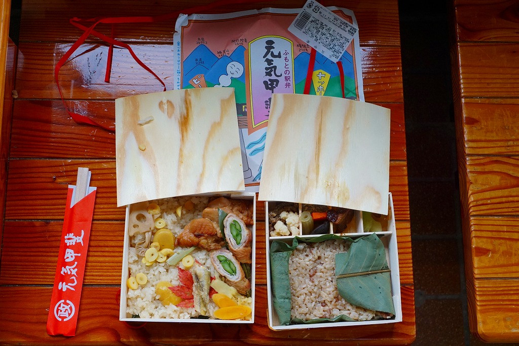 新宿駅から中央本線の特急列車で約2時間。北杜市(ほくとし)は山梨県の北西端を占める、人口約4万人の市。甲斐駒ヶ岳や八ヶ岳や金峰山や茅ヶ岳に囲まれた高原に、農地が広がり、山や緑に観光客が来る。駅弁は大正時代から売られ、平成時代に売店へ「小淵沢駅の名物は駅弁です」と掲示するほどの名物となった。1904(明治37)年12月21日開業、山梨県北杜市小淵沢町。