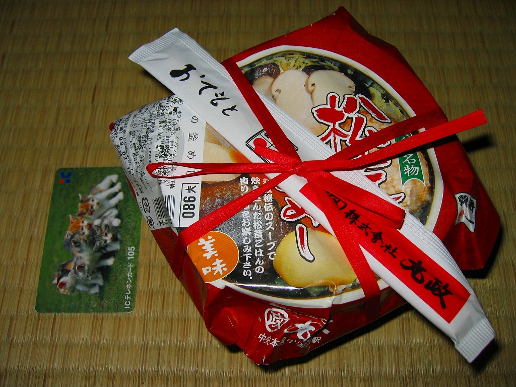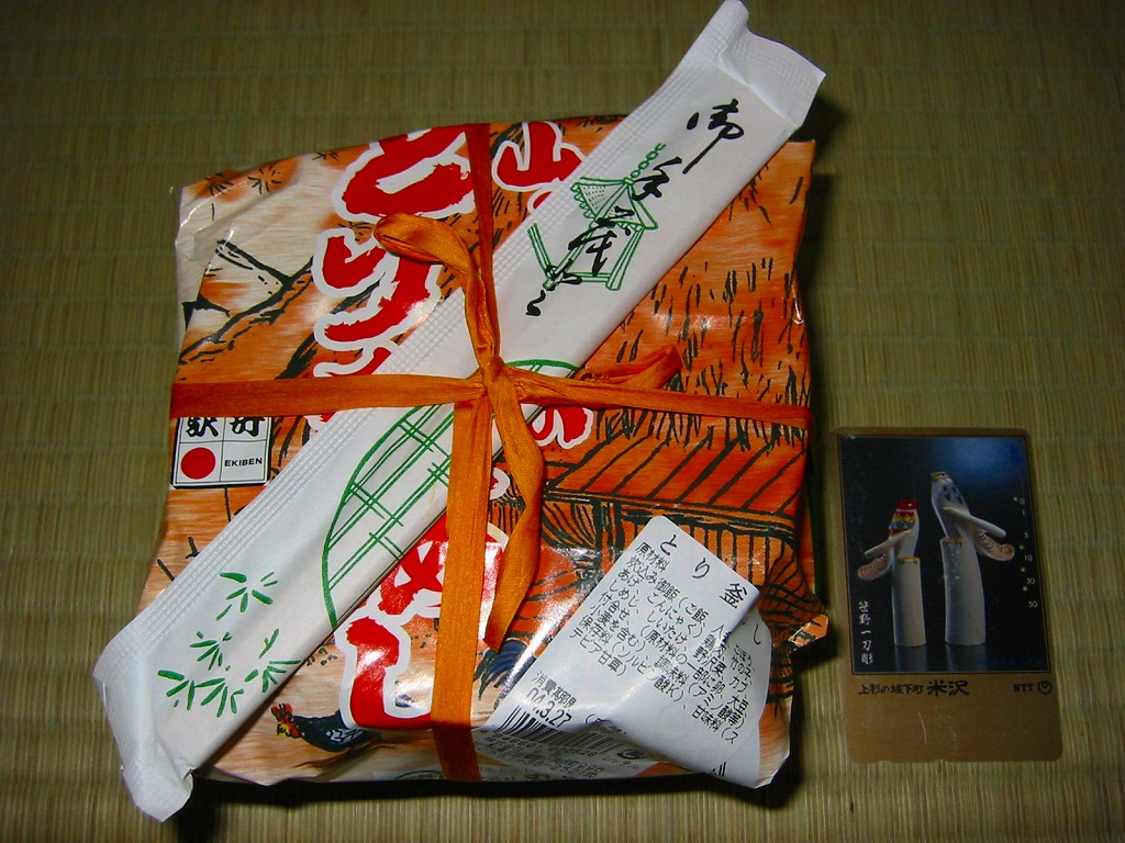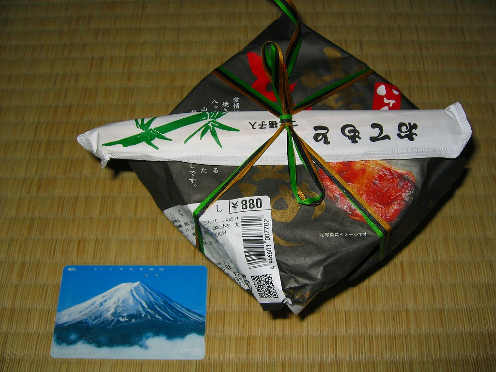 上記の駅弁「八ヶ岳山菜とり釜めし」の、2004(平成16)年2月時点での姿で、2003年の発売当時の姿。容器や中身が一緒でも、掛紙の絵柄が異なるだけで、まるで新作か別バージョンの駅弁に見えてくるもの。駅弁催事向け商品なのだろう、これも駅弁大会で購入した。2006年1月の京王百貨店の駅弁大会では、これが長野県の茅野駅の駅弁と紹介され、さらに「八ヶ岳の山菜馬かめし」というすごい誤記で会場内掲示に載り、ネット上がざわついた。