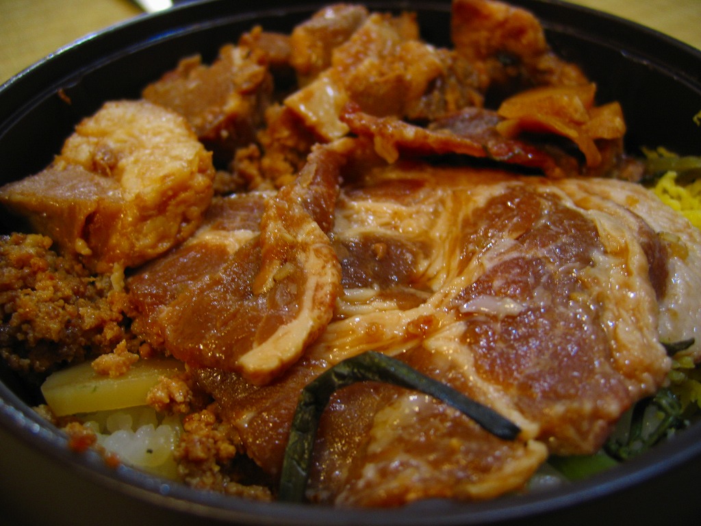 決して分量の多い駅弁ではないが、駅弁の名前どおり大盛の雰囲気がたっぷり。豚焼肉のレア感は他の駅弁では味わえないし、豚肉の品質も良さそう。ただ、パッケージにわざわざ電子レンジのイラストまで掲載して加熱を勧めたり、購入箇所が疑義駅弁の販売に積極的だったり、ネット上での発表や報告状況などを見ると、現地で見られない駅弁大会専用商品の疑念はある。2009年までの販売か。