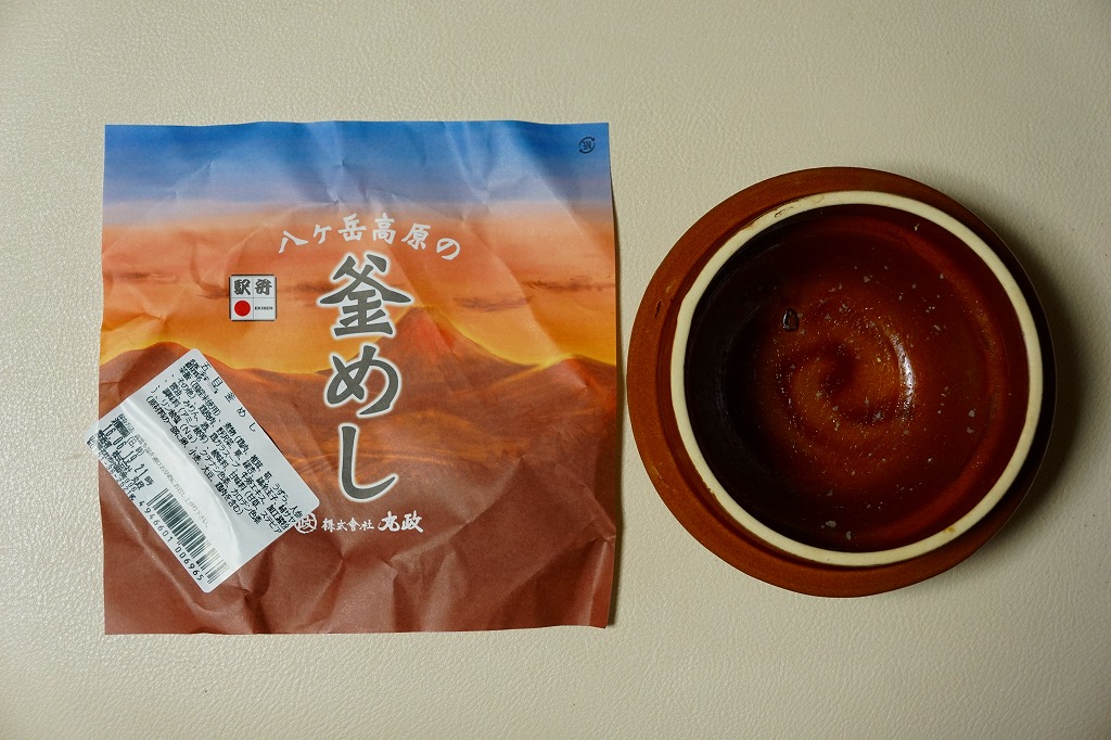 小淵沢駅で釜飯駅弁を見たことがないし、公式サイトにも釜飯駅弁はないし、しかし駅弁催事ではかなり幅を利かせている。このページに挙げた駅弁は全部まとめて、小淵沢駅弁を名乗る催事向け商品なのかもしれない。2011年頃までの販売か。