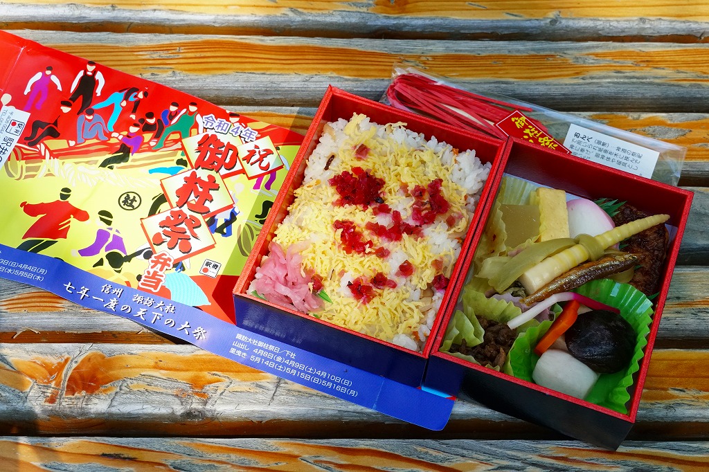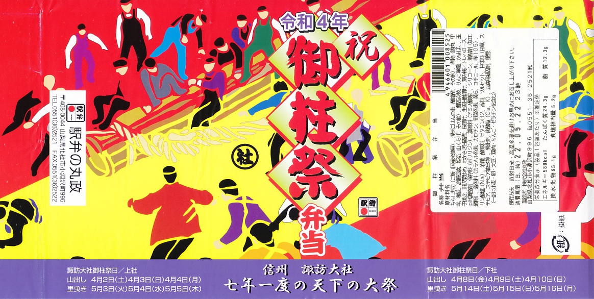 2022(令和4)年5月1日に小淵沢駅と茅野駅で発売。8日までの販売予定を月末まで延長し、6月にも売られた模様。6年ごと、数え年では7年ごとに開催される諏訪大社の御柱祭(おんばしらまつり)に合わせて、2016年以来6年ぶりに再登場。掛紙の絵柄は、6年前とまったく同じ。曜日配列も同じなので祭の日程の表記も変わらず、年号と調製元の表記だけが変わった。おしながきと割りばしと「おんべ」を添える点も変わらない。