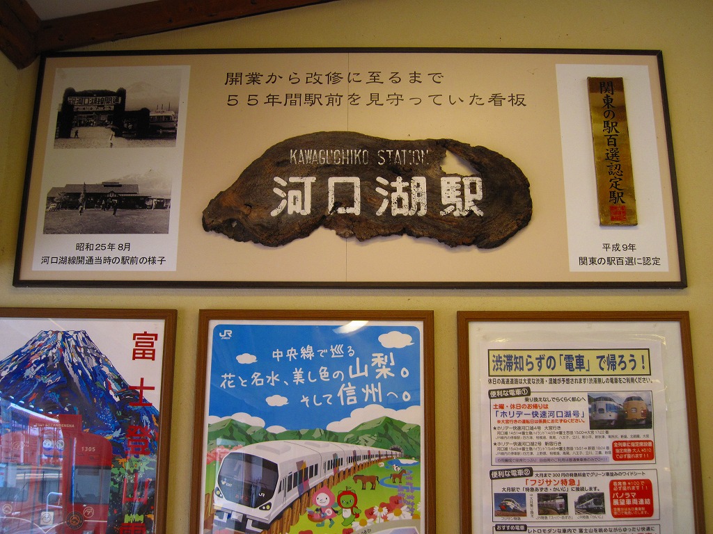 JR新宿駅から中央本線特急列車と富士急行線を乗り継いで約2時間。駅名のとおり河口湖から徒歩約10分の位置にある富士急行線の終着駅で、富士山五合目や新宿方面など各地へのバス路線が集まる、観光地の交通結節点である。駅弁が2010年3月に生まれたが、2度の撤退で今は何もない。1950(昭和25)年8月24日開業、山梨県南都留郡富士河口湖町船津。