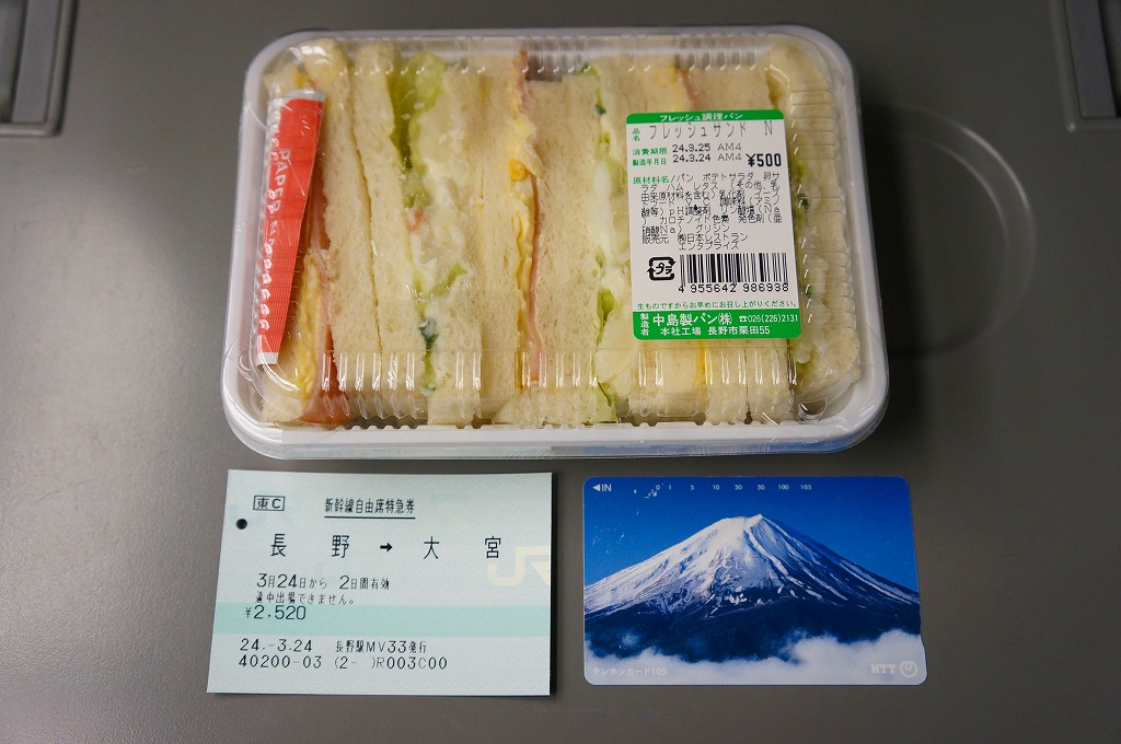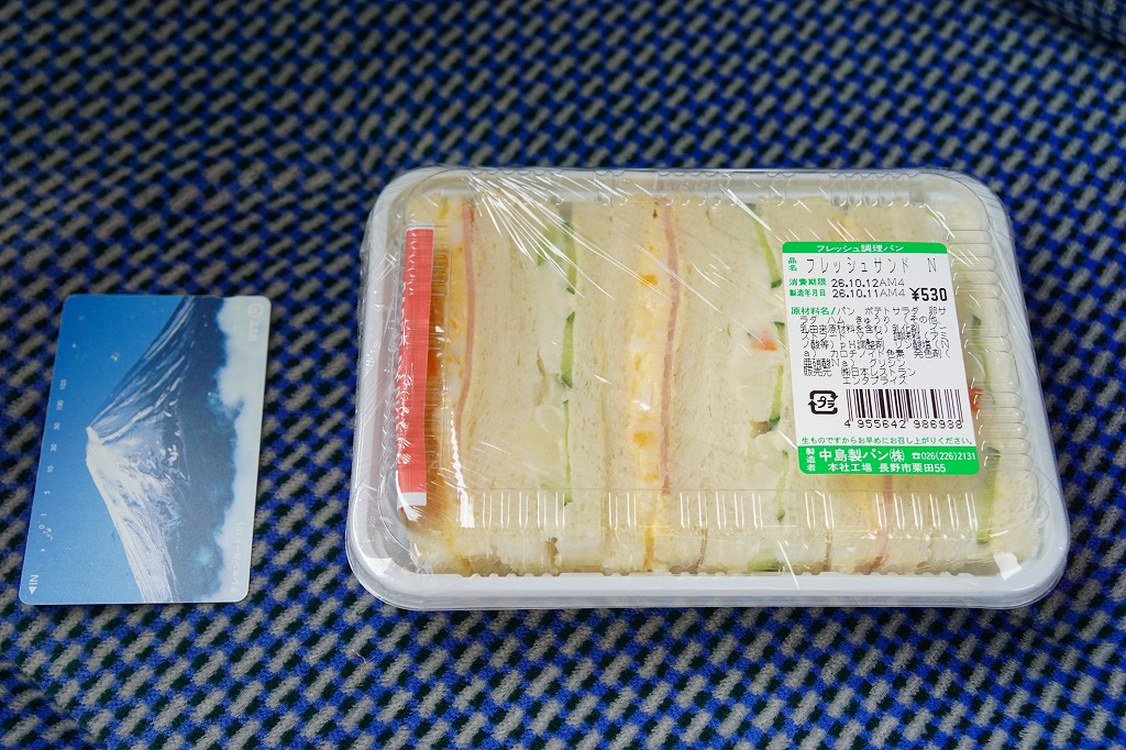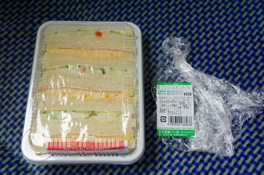 上記の商品「フレッシュサンドN」の、2012(平成24)年3月時点での姿で、やはり長野新幹線の車内販売で買ったもの。価格と野菜に違いがあるが、ほぼ変わらない。