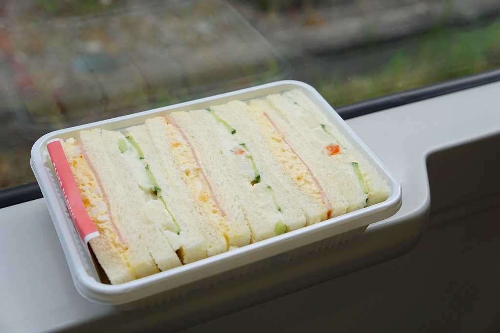 長野新幹線の車内販売で買えたサンドイッチ。ハム玉子サンドとポテトきゅうりサンドが3切れずつ、サンドイッチ向けプラ製容器に収まるという、街の中でも車内販売でも惣菜としてどこでも買えるタイプのサンドイッチ。調製元が115年間もの長きに渡り長野駅の駅弁屋であったものの2007年1月に撤退したナカジマ会館と似た社名を持つところが大いに気になったが、はたして何らかの関係があるのだろうか。長野駅の売店では、この商品は見掛けなかった。