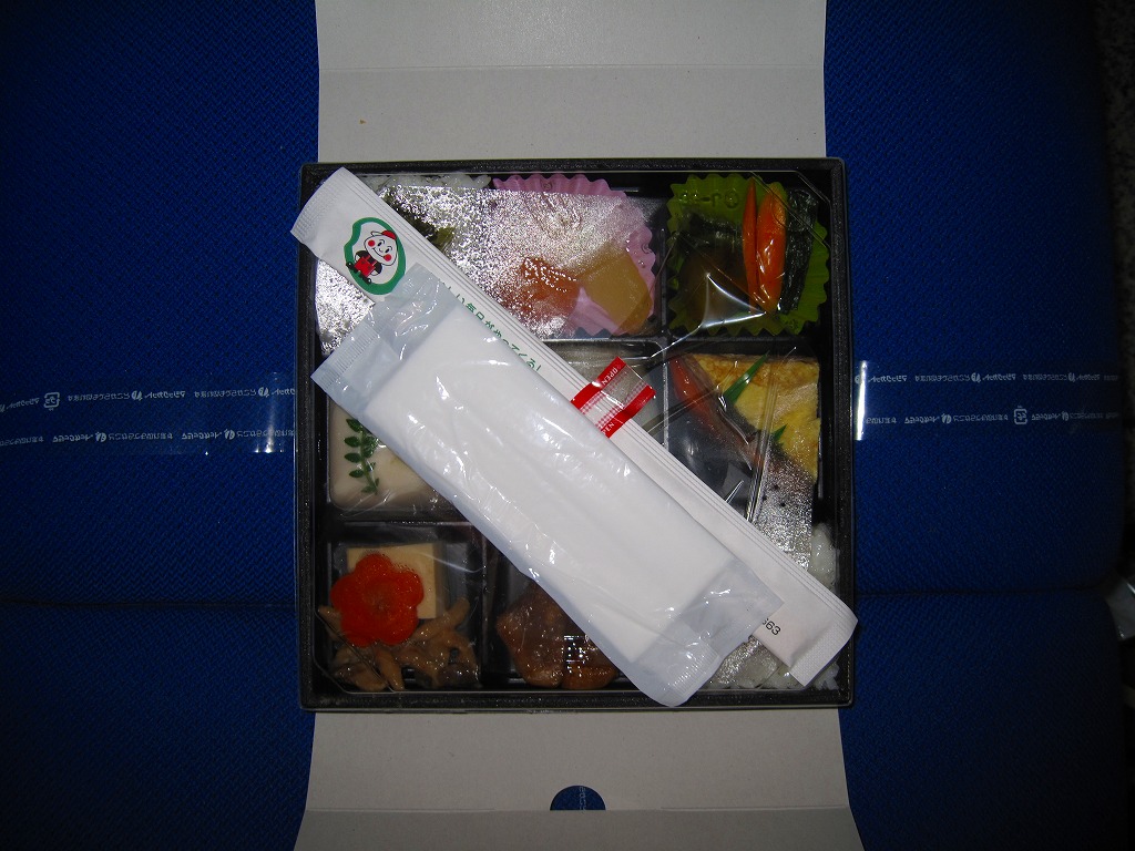 2009(平成21)年10月に長野駅で発売。黒い正方形の容器に、おそらく信濃の名物を大量に描いたボール紙を巻く。黒いプラ製トレーの9区画に詰まる中身は、野沢菜おやき、豚角煮、サーモン味噌焼と玉子焼、ごま豆腐、高野豆腐とシメジ味噌和えと花ニンジン、日の丸御飯、野沢菜載せ御飯、野沢菜や小ナスなどの漬物、りんごのコンポートとあんずのシロップ煮。確かに信州が詰まっているし、おやきをそのまま駅弁に入れてくるとは驚いた。駅弁大会に出るほどではないが、旅先に置いてほしい山の味。2014年頃までの販売か。