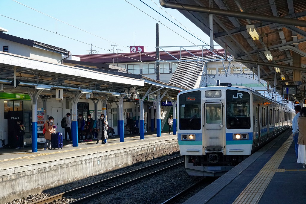 新宿駅から特急あずさで2時間強。諏訪市は長野県の中央部にある人口約5万人の城下町で、精密機械工業やハイテク産業が集積する工業都市であり、諏訪湖に面して諏訪大社を擁する観光地。駅弁は1906(明治39)年からの駅弁屋が1972(昭和47)年に廃業、辰野駅の駅弁屋が進出したが2003(平成15)年頃に廃業、塩尻駅の駅弁が置かれたが2014(平成16)年頃に終了。2020年に下記のとおり「諏訪弁ほいじゃねェ」が出現。1905(明治38)年11月25日開業、長野県諏訪市諏訪一丁目。