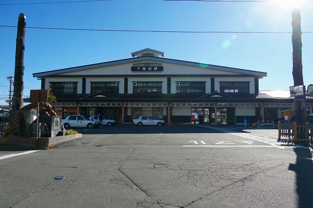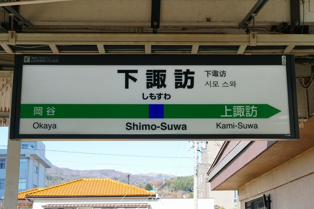 新宿駅から特急あずさで2時間強。下諏訪町は長野県の中部で諏訪湖に面する、人口約2万人の門前町(鳥居前町)。古くから諏訪大社下社と下諏訪温泉があり、中山道と甲州街道の下諏訪宿が位置する。下諏訪駅の駅弁があったと聞いたことはないが、小淵沢駅や塩尻駅などの駅弁が売られたことはあるらしい。1905(明治38)年11月25日開業、長野県諏訪郡下諏訪町広瀬町。