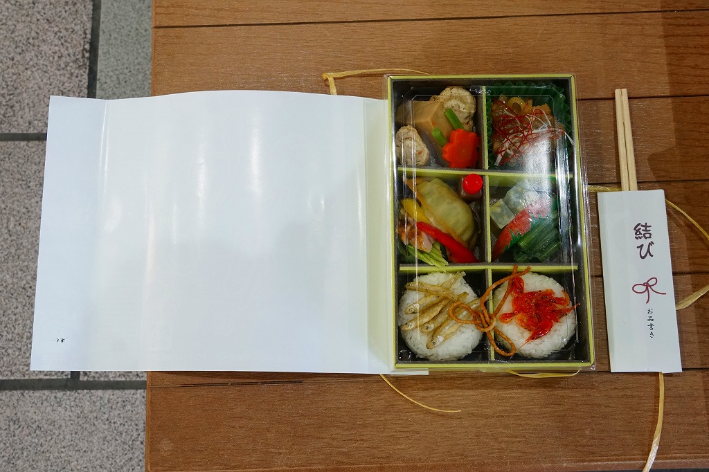 掛紙には諏訪の寺院と紅葉の写真が使われる。6区画の中身は、ワカサギ唐揚と飯、川エビ煮付と飯、コイの甘酢あんかけ、野沢菜餃子と豚味噌焼、しみ豆腐、カリンの寒天やリンゴなど。この掛紙と中身は、発売1年未満ですでに何度か変わったという。諏訪の駅弁として食べて印象的で、それでいてそんなに癖はなく、そして他の事例ならばとても続かなそうな手の込んだものが、一年近くも駅売り弁当として続いていることもまた印象的だった。