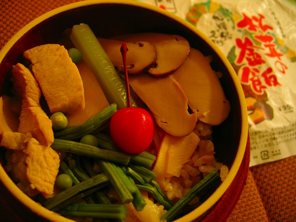 個人的に日本一普通の味がするマツタケ駅弁だと思う。マツタケの高騰により、昭和中期には全国各地で秋の味覚を提供していたマツタケ駅弁も、今は高価で入手難かつ素晴らしいものと、駅弁催事に出てくる味や香りが足りないものに分かれてしまった。これは駅で一年中買え、たまにはこうやって駅弁催事に出てくるが、マツタケの程良い分量と味と香りと食感が、いつでもちゃんと確保されている。