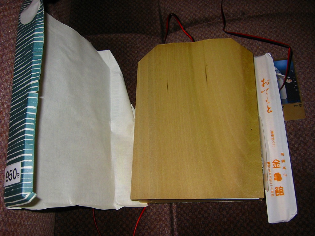 入手状況から1989年頃のものと思われる、昔の高山駅弁のふた。容器や中身は上記の現行品とだいたい同じか。価格を税込み720円に訂正しており、1989年4月の消費税導入からほどない頃のものか。