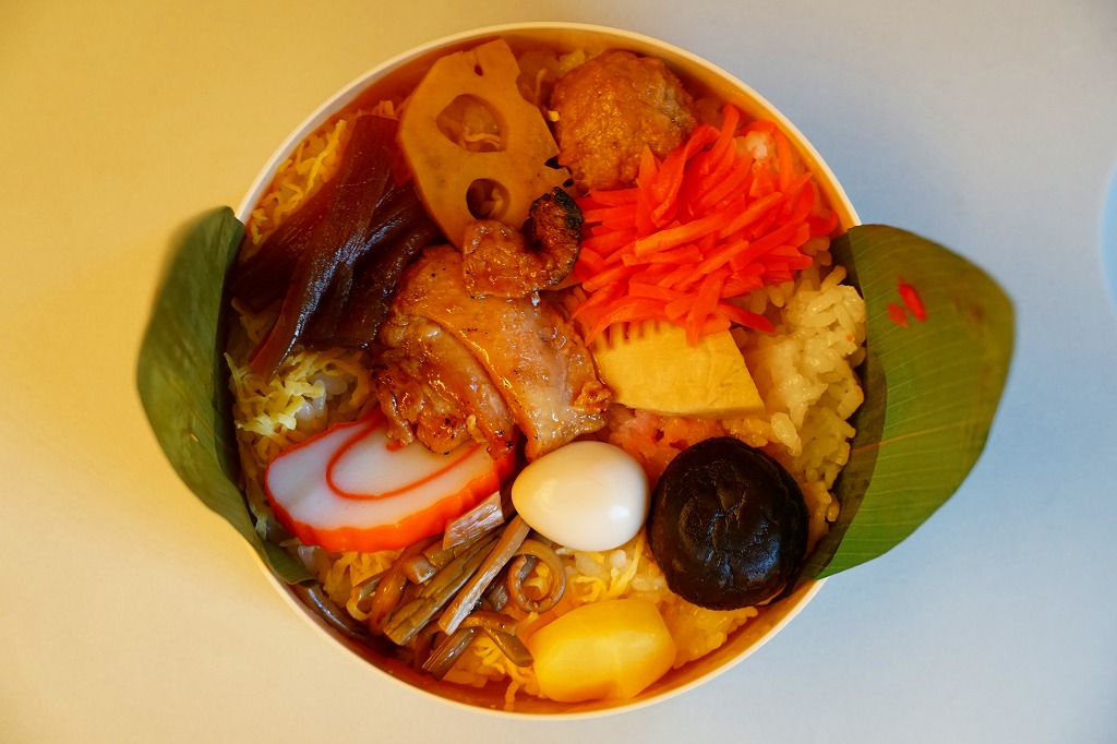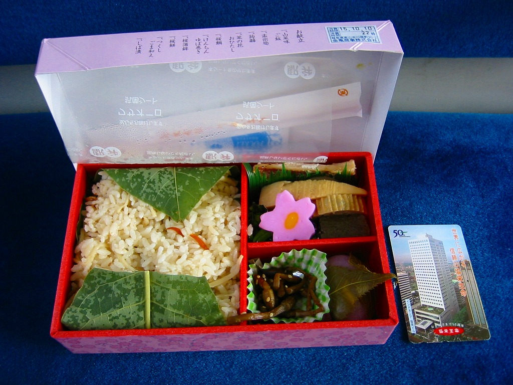 桜柄で桜色の容器に、高山祭の屋台と桜の花を描いたボール紙のふたをかける。中身はほうばに包まれた山菜味御飯に、つくし胡麻和えや桜鯛や桜蒲鉾などにデザートには桜餅。春色満点なメニューも良いが、なによりも香りの高さが素晴らしく、確かに期間限定で消してしまうには惜しい駅弁。