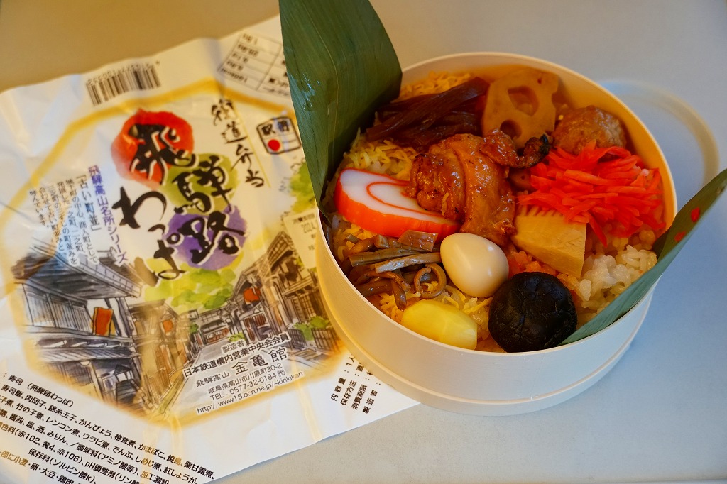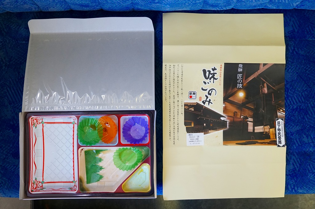 経木折で落ち着いた「飛騨べんとう」よりは賑やかにされた印象も、令和の時代に調製できる弁当はこうなるのだろう。価格は2008年のリニューアル時で1,000円、2014年4月の消費税率改定で1,030円、2020年時点で1,050円、2023年時点で1,150円、2024年時点で1,200円。
