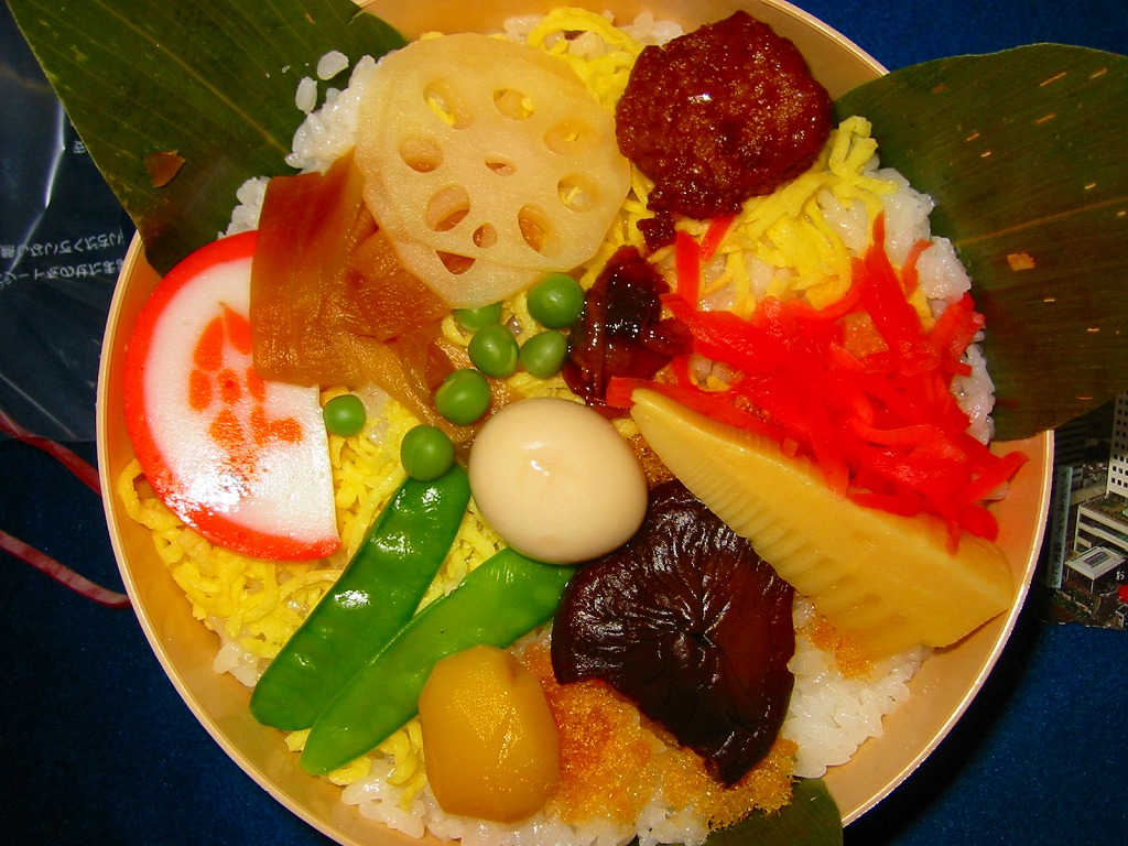 底に通気の穴があいた、上げ底で円形の硬いプラ容器に、透明なふたをして、飛騨高山名所シリーズとして「古い町並」を描いた掛紙で包む。この容器に笹の葉を敷き、酢飯を詰め、錦糸卵、肉団子、かまぼこ、焼鳥、うずら玉子、タケノコやシイタケなどの煮物、山菜、くり、紅生姜などで覆う。容器の構造やおかずの構成で、駅弁ではありがちのようで他になさそうな丼もの。価格は2003年時点で850円、2014年4月の消費税率改定で880円、2020年時点で900円、2023年時点で1,080円、2024年時点で1,150円。