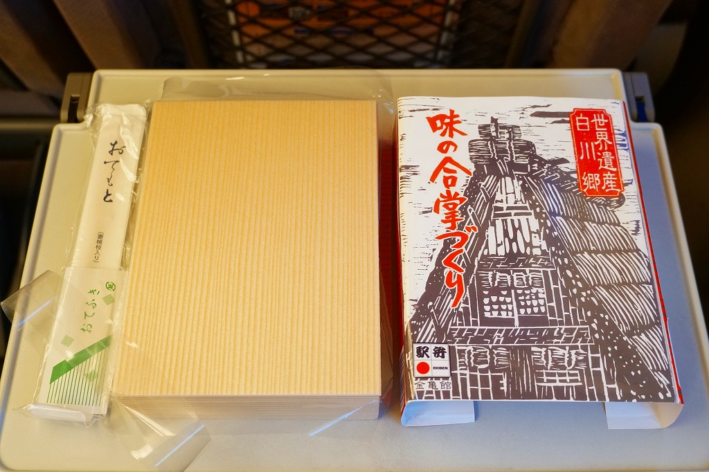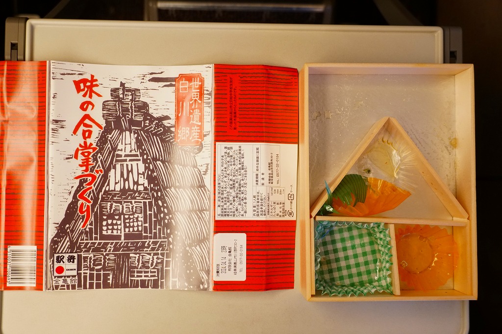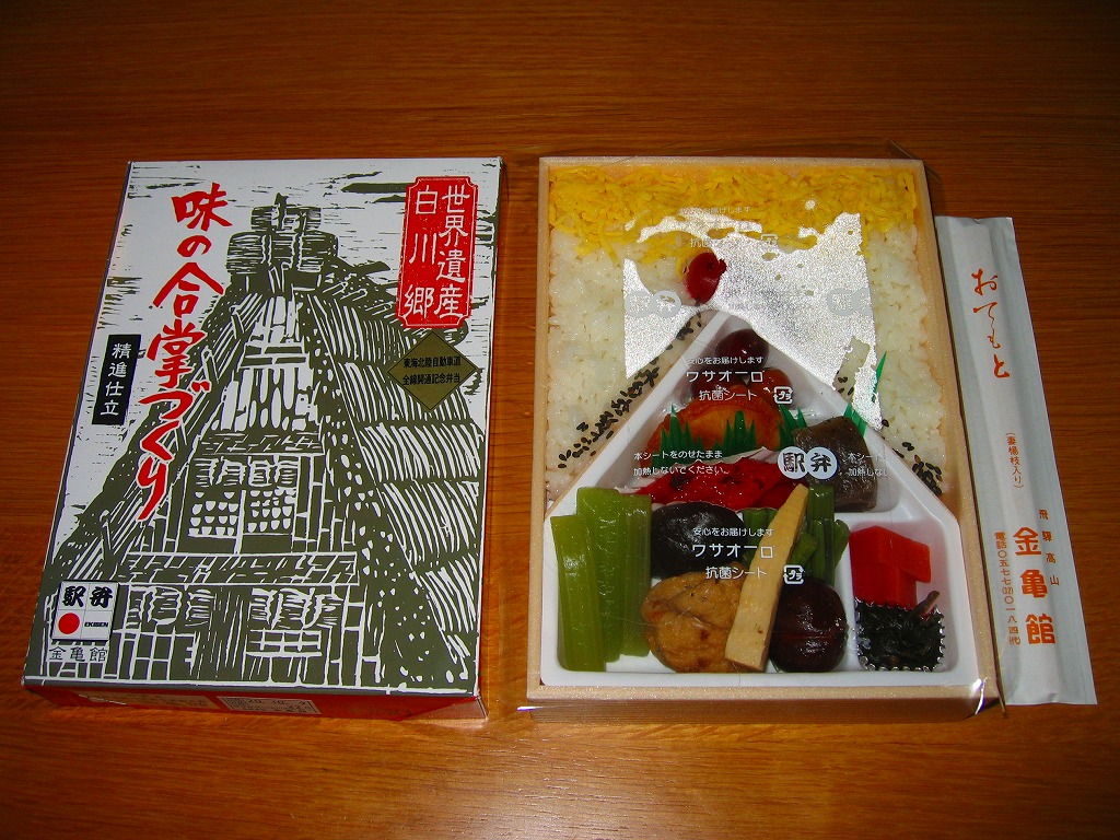 この駅弁の発売時には、そのコンセプトとデザインが絶賛されたという。今でこそ朴葉寿司などの有名駅弁に隠れがちではあるが、白川郷が世界遺産に指定され合掌造が全世界に発信される現在でこそ輝いているはず。43年間変わらず「国鉄」の文字まである掛紙に、「のぞみで、行こう。」という違和感のあるシールが貼らされている。2008年2月のリニューアルにより終売。
