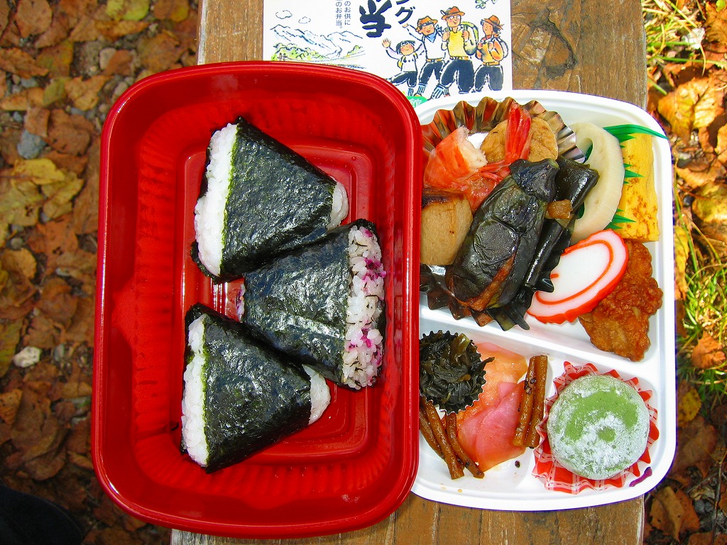 2006(平成18)年までに発売か。二層構造のプラ製ホカ弁容器を、ハイキングというか駅弁の名前からトレッキングと解釈すべきイラストを掲載したボール紙の枠にはめる。中身は下段がおにぎり3個、上段は焼き魚、カマボコ、玉子焼、鶏唐揚、ナス肉詰め、昆布巻、エビやがんもどきやレンコンの煮物、よもぎ大福、付合せ。酸味が勝る山の味。価格は購入時で850円、2014年4月の消費税率改定で880円。2020年までに終売か。