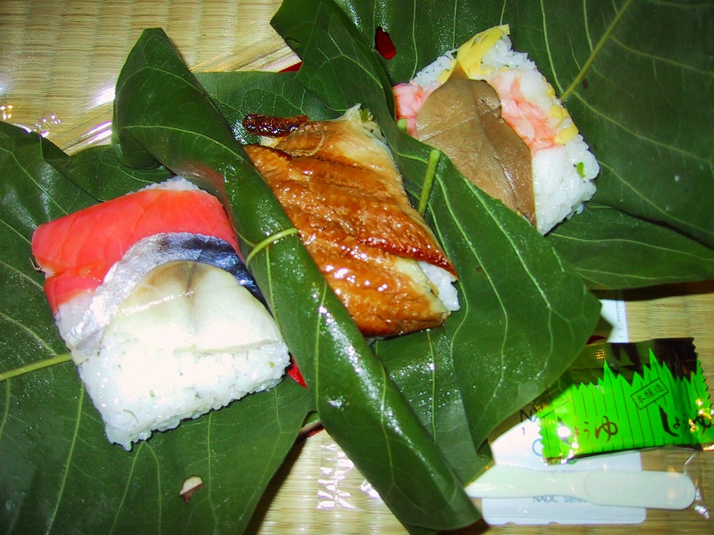 スーパーで肉や魚を入れるようなトレーに、酢飯にぷりっぷりの鯖を載せ朴葉で巻いた棒寿司を、ラップで巻いてさらにトレーごとラップで巻いて、光沢カラー印刷の美しいボール紙製パッケージに収める、お土産系の駅弁。価格は高いが、それだけの量と味を備えていると思う。出張実演販売にも力が入る商品で、その場合は写真のようにスライスしてあり食べやすい。価格は2002年の購入時で1,500円、2011年時点で1,800円、2015年時点で1,850円、2022年時点で1,900円、2023年時点で2,000円、2024年時点で2,500円。