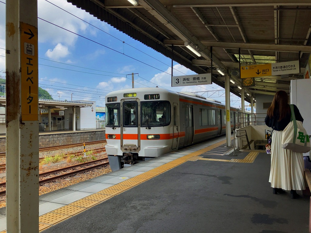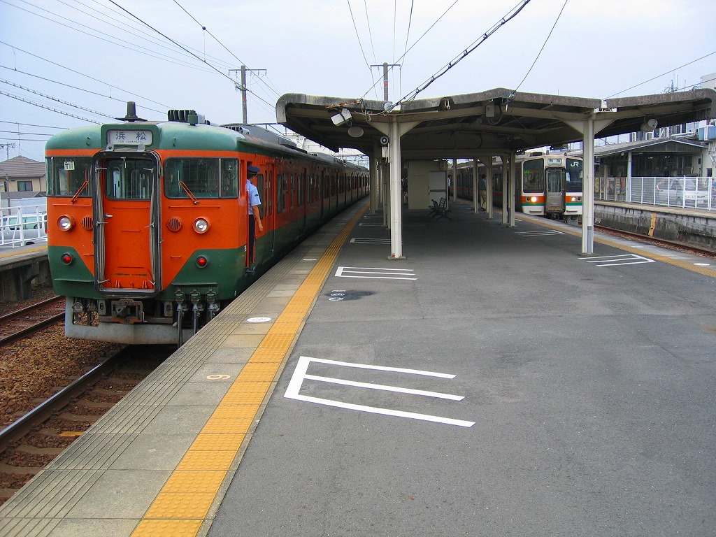 静岡から普通列車で約1時間。袋井市は静岡県西部で太平洋遠州灘に面した人口約9万人の宿場町で、農業や工業がさかんなほか、近年はサッカースタジアムや花火大会で知名度を上げている。駅弁は地元の結婚式場「さのや会館」が2004年に開発し、改札外駅舎内のコンビニで販売されたが、2006年の春までに駅売りがなくなった模様。1889(明治22)年4月16日開業、静岡県袋井市高尾字三門。