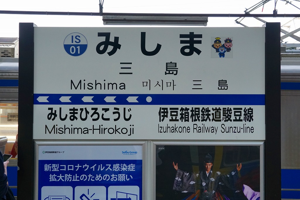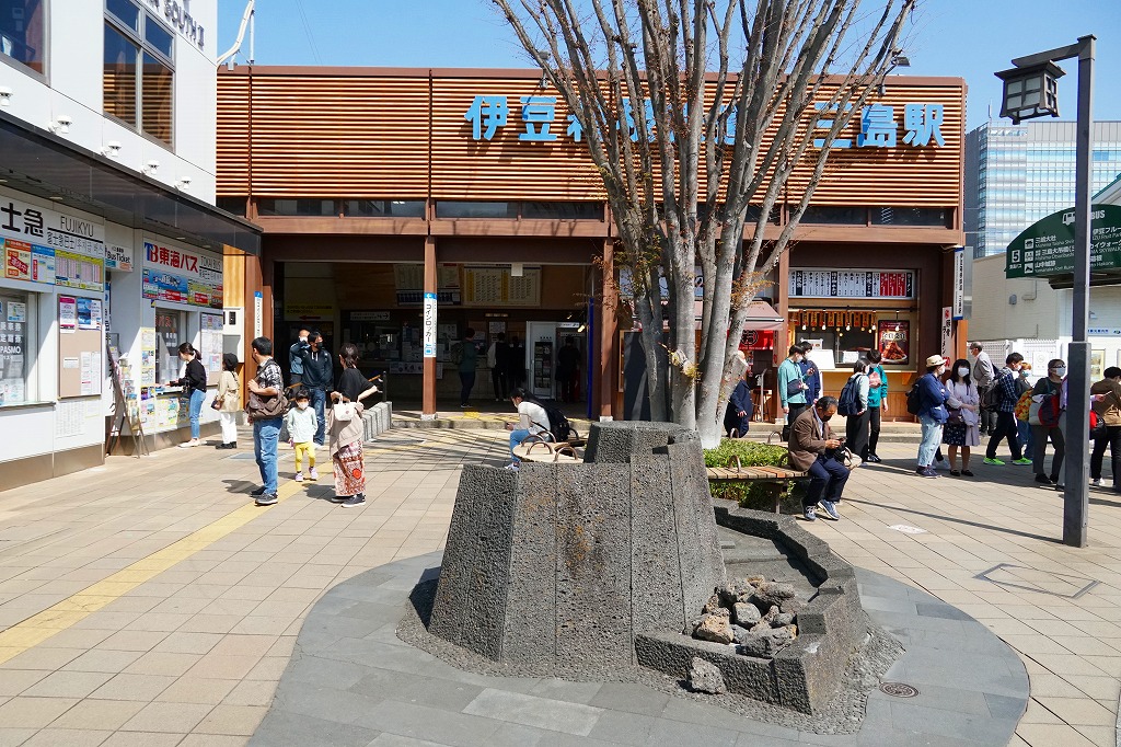 JR東海道新幹線と東海道本線の三島駅に隣接する、伊豆箱根鉄道の駿豆線(すんずせん)の始発駅。伊豆長岡や修善寺へ行ける電車が毎時2〜3本出るほか、一日2往復の特急列車がJR線に乗り入れて東京駅へ向かう。この駅で独自の駅弁はないが、下記のとおり2017年に駅弁が売られた。1934(昭和9)年12月1日開業、静岡県三島市一番町。