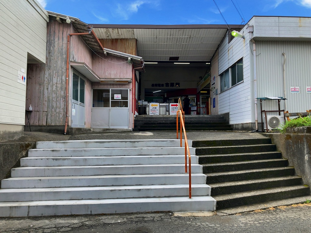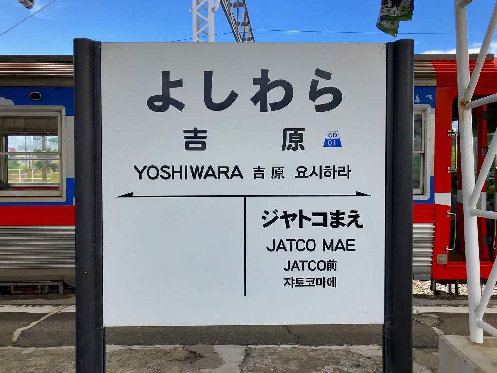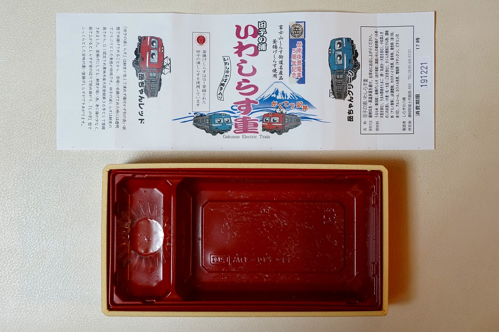 静岡駅から電車で40分の、JR東海道本線の吉原駅に隣接。1966年に2市1町の合併で富士市へ吸収されるまで単独で市制を敷いた吉原は、静岡県の東部で駿河湾に面した宿場町。江戸時代の宿場町が中心市街地に更新されたほか、工業の発展で国鉄駅と町や工場を結ぶ鉄道ができた。駅弁はJR駅でなく岳南電車の駅で2019年に生まれ、しかし翌年のコロナ禍で市販を停止。1949(昭和24)年11月18日開業、静岡県富士市鈴川本町。