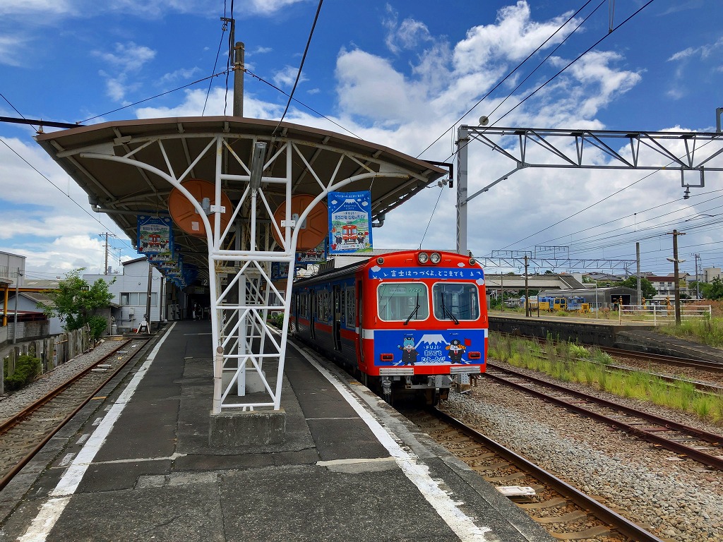 岳南電車は、静岡県の富士市内で吉原駅と岳南江尾(がくなんえのお)駅との間、9.2kmを結ぶ鉄道路線と鉄道会社。1〜2両の電車が約30分毎に走り、全10駅を約20分で結ぶ。沿線工場の貨物と従業員の輸送を担ったが、車社会化で貨物や旅客を自動車に奪われたうえに、JR貨物の合理化のあおりを受けて2012(平成24)年3月に貨物輸送がなくなり、廃線の危機を迎えた。以後は富士市の補助金により運行が続く。観光の資源も要素もない路線に客を呼び込むため、富士山が見える、工場夜景がきれい、クリスマス装飾など、鉄道の存続のための話題づくりに余念がない。