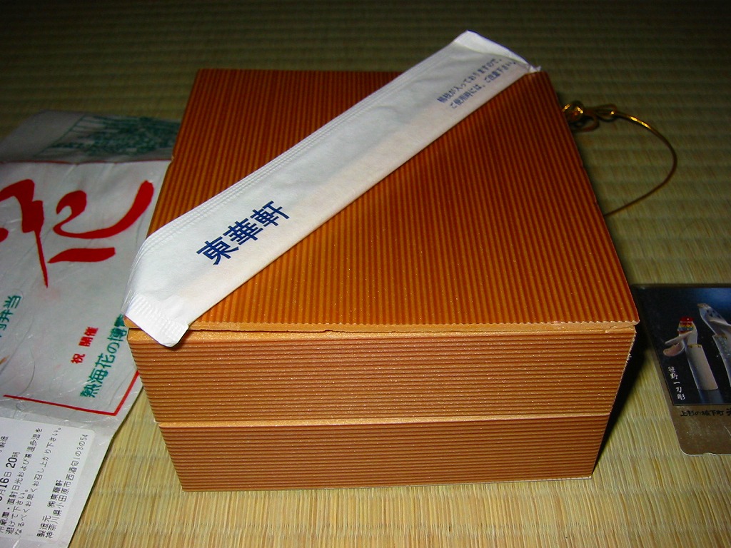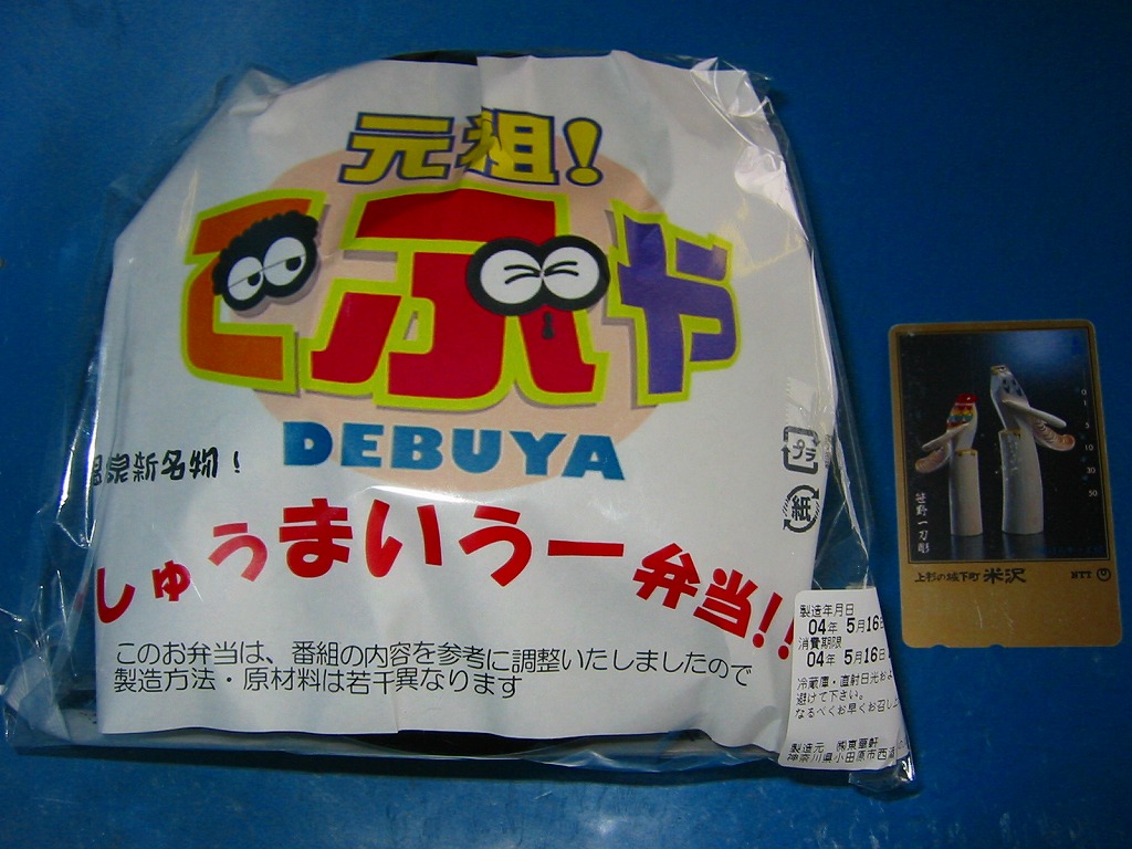 2004(平成16)年4月30日にテレビ東京系列で放送された番組「元祖!でぶや」で、石塚英彦・パパイヤ鈴木の両氏により企画製作されたお弁当。翌5月1日から熱海駅にて、ゴールデンウィーク期間中限定で毎日30個限定で発売され、好評のため大増産された模様。筆者は購入できず。5月9日からリニューアルを経て発売が再開されたそうで、写真のものと当初発売のものが同一かどうかは不明。