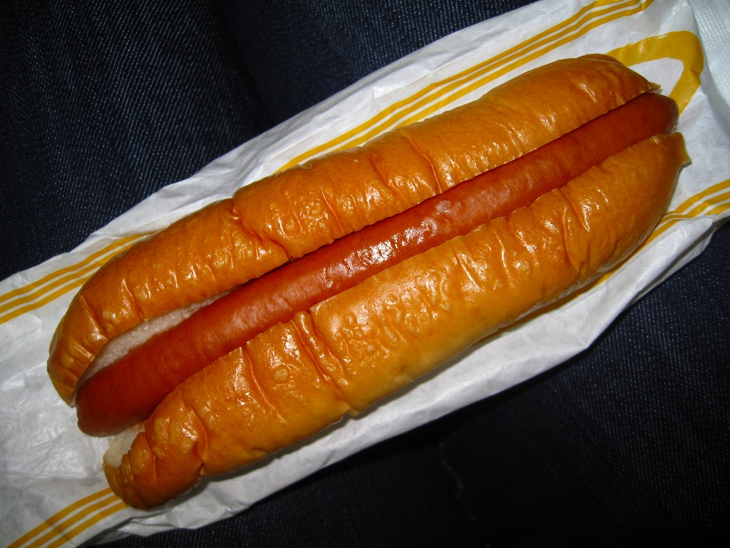 主に東海道本線の上り東京方面の列車が発着する、熱海駅の4・5番ホーム上で、駅弁とともに売られたホットドッグ。細長いロールパンにソーセージ1本を挟んで袋に詰めただけの、何のひねりもない安物のホットドッグ。駅構内でこういう商品が作られていることは珍しいと思い、購入してみた。屋台で買うタイプと同じく、アツアツの状態で手渡され、ケチャップかマスタードは好みでかける。熱海駅の駅弁屋でもある東華軒の社史には、1950(昭和25)年4月1日にホットドッグの販売を開始したとあるが、それ以来の歴史がある品物には見えない。現在は売られていない模様。