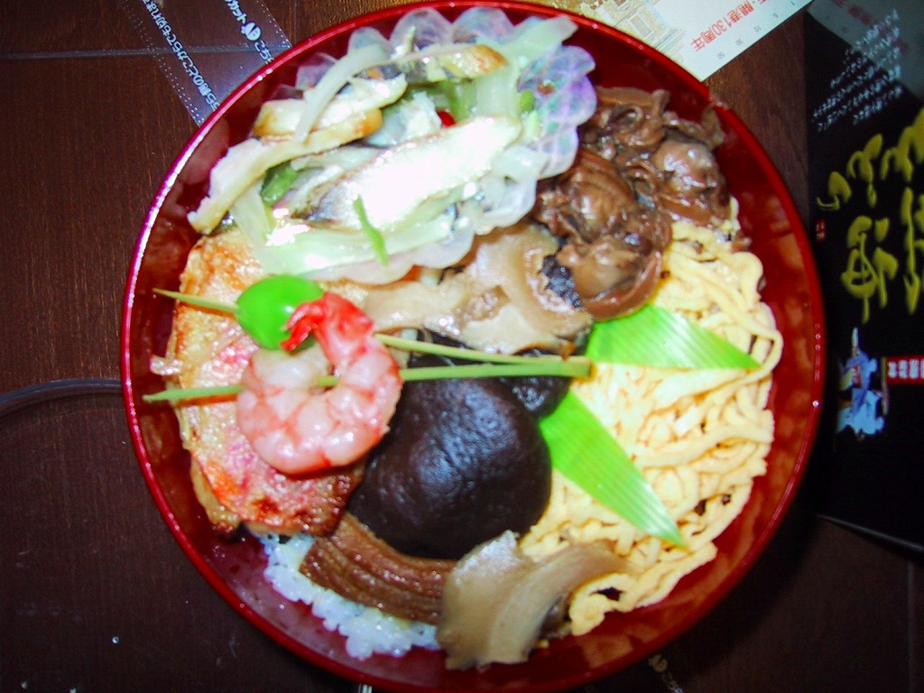かなりユニークで味勝負の鶏飯。前月に訪問した小田原駅や熱海駅では実物も商品案内もなく、疑義駅弁かと思ったが、ネット上に現地での収穫報告があるため、単に私の運が悪かった模様。個人的に最近の小田原駅と熱海駅の駅弁は、催事場でしか買えなくなりつつある。2009年度以降は売られていない模様。