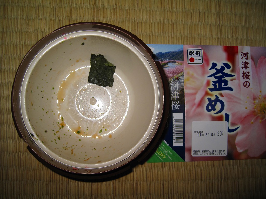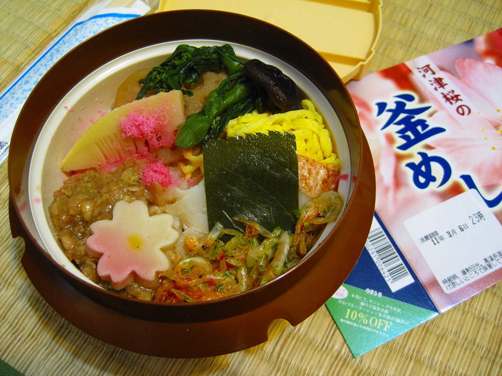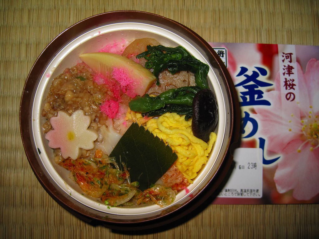 2011(平成23)年2月5日に熱海駅で発売。調製元の所在地が小田原であるため、日本レストランエンタプライズ(NRE)の駅弁大会では小田原駅の駅弁とされた。プラスティック製の釜型容器に桜の花のマクロ写真を印刷したボール紙をかける。中身は茶飯の上にキンメダイの酢漬け、サクラエビ煮、とりそぼろ、タケノコ煮、レンコン煮、菜の花煮、桜でんぶ、錦糸卵、桜花型の麩などを載せるもの。春と桜をたくさん詰めているが、見栄えや味はちょっとくすみがち。東華軒の味であるとりそぼろが、中身では最もうまかった。おそらく春季限定。2013年以降は販売されていない模様。