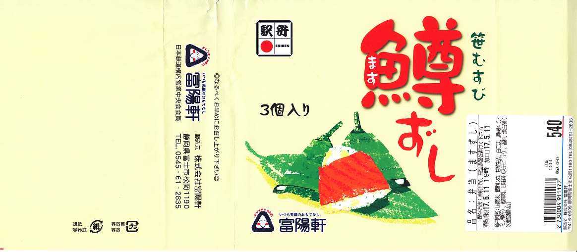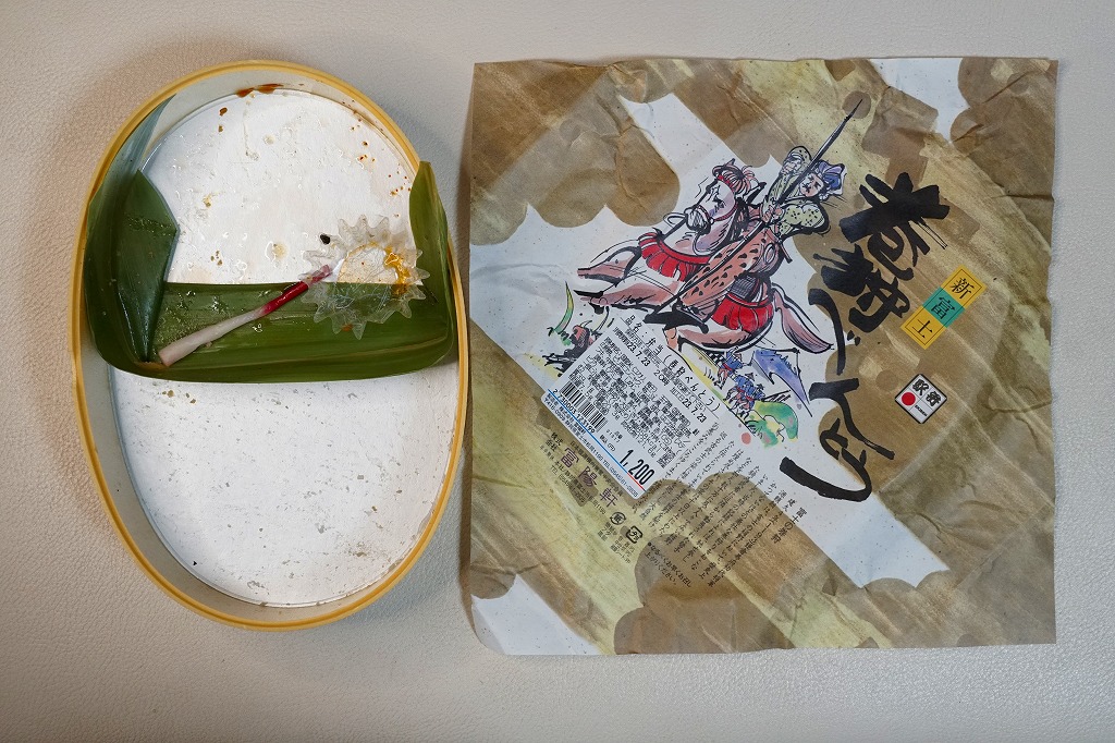 なお、駅弁の名前やパッケージの記述を見ると三島駅弁のように見えて、実際に三島駅での販売もあるそうだが、富士駅弁の業者の商品なのでここで紹介する。現在は販売されていない模様。