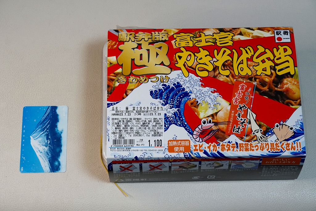 2000年代のご当地グルメブームでの成功事例として全国にその名を広めた富士宮やきそばの特徴である、もちもち太麺の雰囲気が加熱でも常温でも手軽に味わえるのではないかと思う。発売時にはデパートの駅弁催事でも売られ、その実演販売では加熱機能のない容器に掛紙を巻いて売られた。かつての国鉄時代、昭和時代の規制から生まれた、麺類に御飯を入れて「弁当」とする手法が、そんな規制がなくなった今になって、ここで採られたのも興味深い。価格は2005年の発売時で980円、2014年4月の消費税率改定により1,000円、2019年5月から1,100円、2023年11月から1,200円、2025年4月から1,300円。