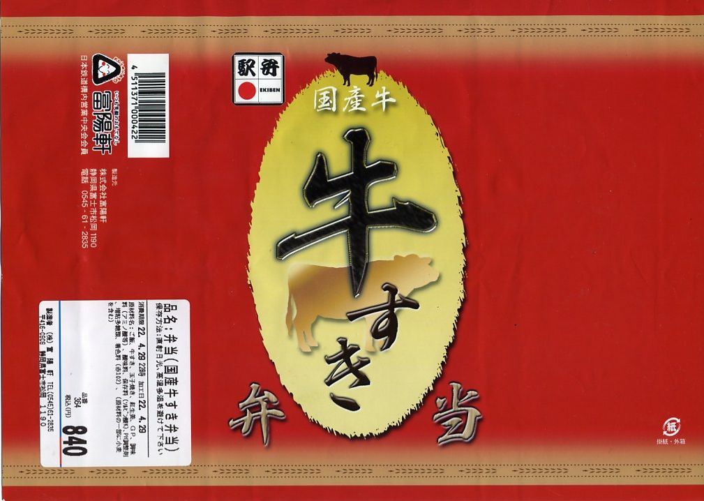 2019(令和元)年5月1日に、下記の駅弁「国産牛牛すき弁当」をリニューアルし、名前を「国産牛」から「静岡産」へ変更。掛紙をスリーブに替え、容器を紙箱からプラ製に替え、おそらく材料を国産牛から静岡産牛に替え、それ以外は変わらない。長方形の容器に白飯を詰め、牛肉とタマネギと糸こんにゃくのすき焼きで覆い、グリーンピースで彩り、玉子焼と紅生姜を添える。価格は2023年の購入時で1,080円、11月から1,200円、2025年4月から1,300円。