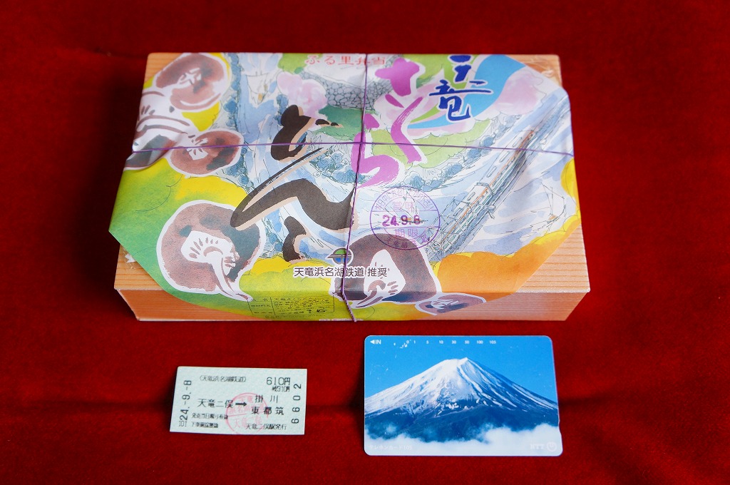 掛川駅から天浜線(てんはません)の列車で約45分。2005年の合併で浜松市の一部となった二俣は、それまでは天竜市であり、静岡県の西部にて単独で市制を敷く城下町であった。天竜浜名湖鉄道の本社と車庫がある天竜二俣駅では、イベントの一環として駅弁が断続的に売られた後、2009年の夏頃から駅舎の売店での販売が定着した。1940(昭和15)年4月1日開業、静岡県浜松市天竜区二俣町阿蔵。