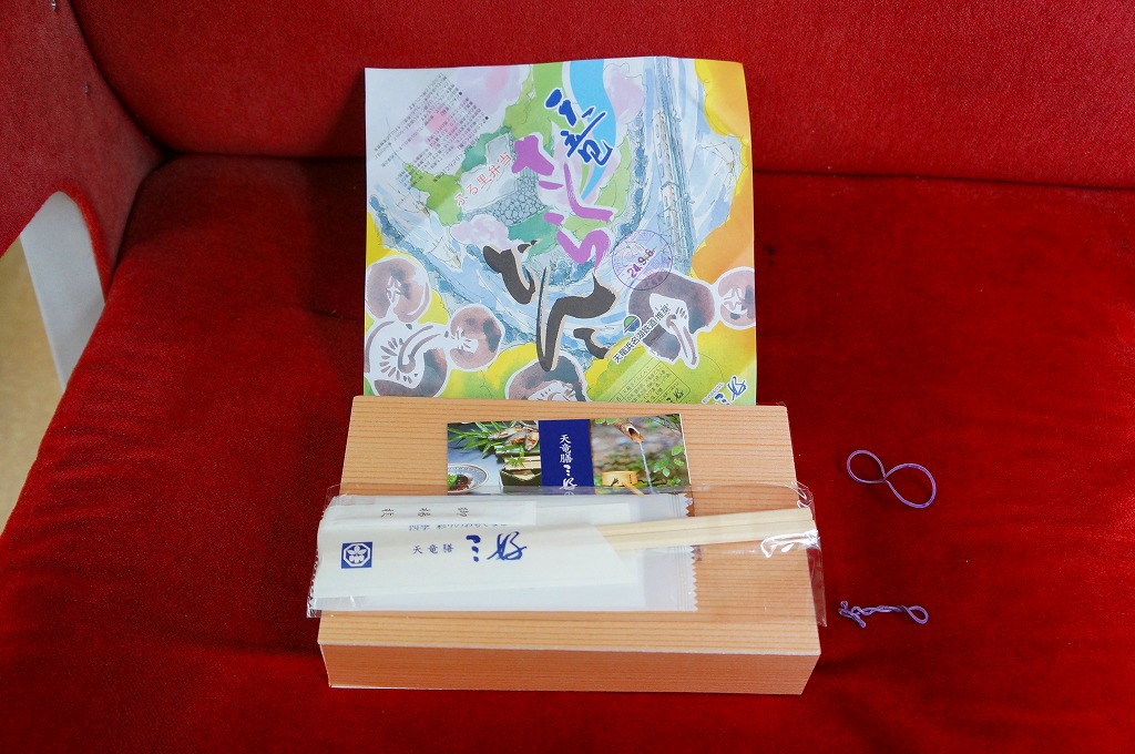 「天竜どんこちらし」の冬季版として、またはおそらく2011(平成23)年1月の京王百貨店の駅弁大会での実演販売に向けて、2010(平成22)年11月20日に発売。天竜二俣駅では3月頃まで土休日に販売するとし、以後も同様に売られる模様。木目柄の容器に、表面に弁当名と天竜川の風景イラスト、裏面に沿線マップを印刷した正方形の掛紙をかける。