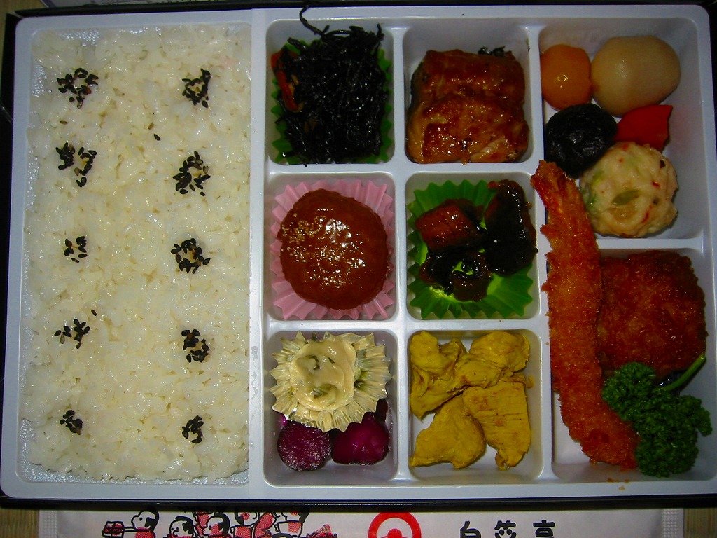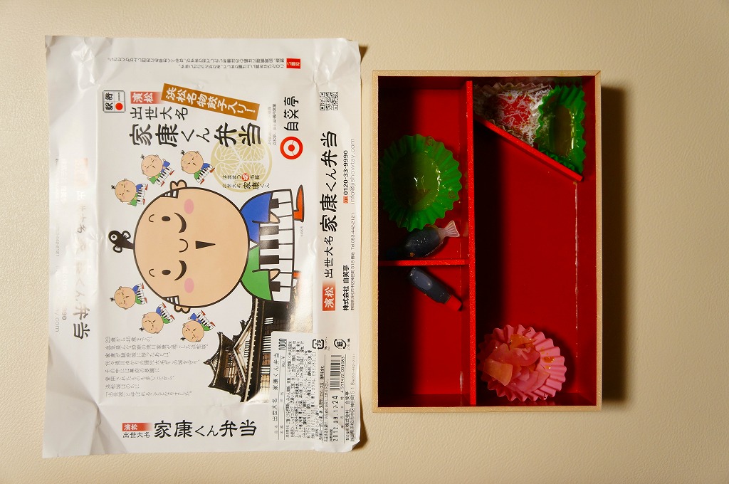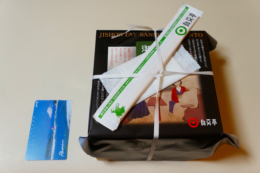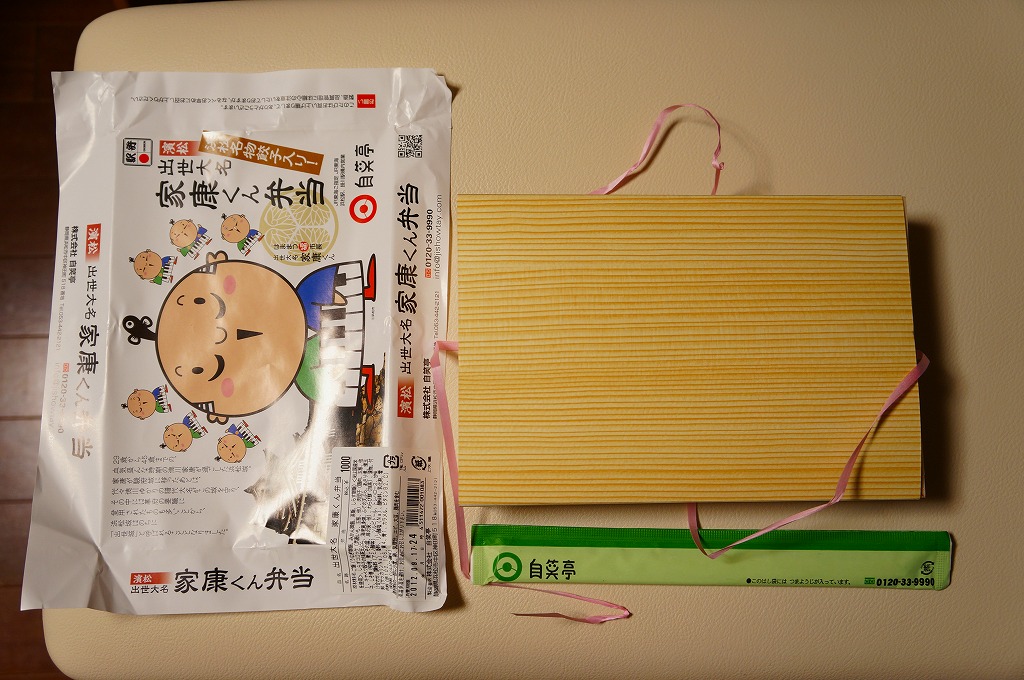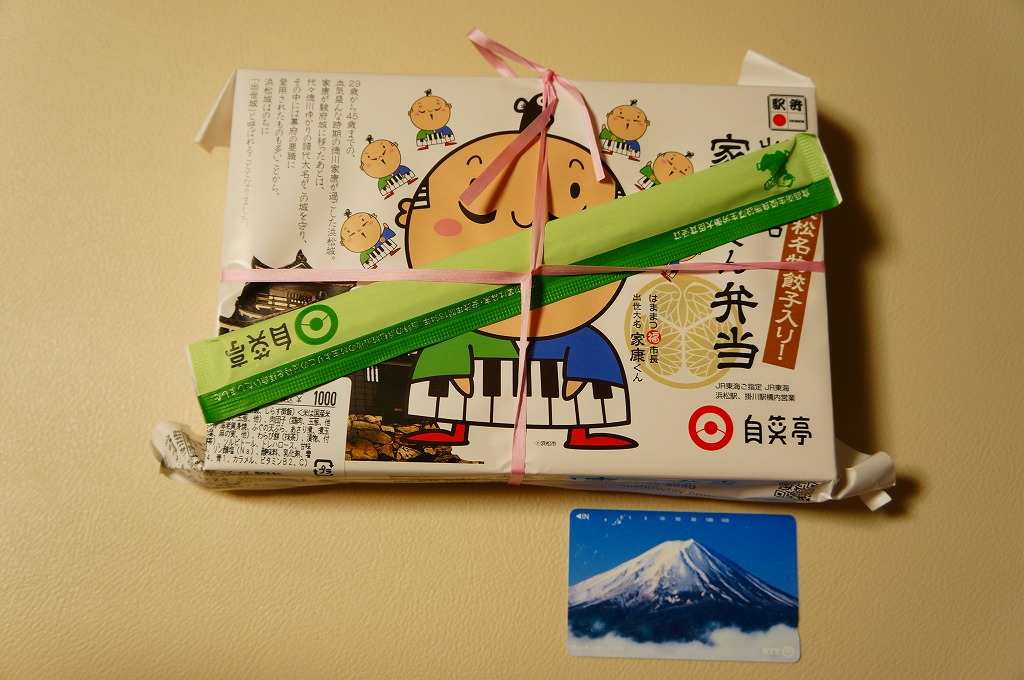 変わった名前をした、浜松駅の並等幕の内駅弁。白御飯のトレーと、焼サバ、エビ煮、玉子焼、焼売、肉団子、アサリ、枝豆、煮物などのおかずを詰めたトレーを、専用の紙箱に収める。プラ製トレーに散らしながら粒を揃えて整然とさせる見た目はきれい。しかしそんな容器のせいか、気分的なものか、味は近隣の駅弁屋よりは今一歩だったような。価格は2010年時点で800円、2014年4月の消費税率改定で830円、2020年時点で850円、2023年時点で900円。