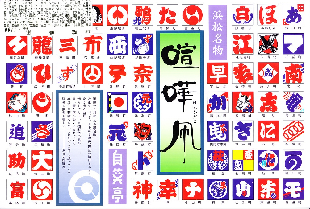 喧嘩凧(けんかだこ)は、浜松では1950(昭和25)年から「浜松まつり」の一環で行う、5月3〜5日の凧揚げ合戦。遠州灘や天竜川に近い公園で、100以上の町内会がたたみ2畳分くらいある大凧を揚げ、相手にぶつけて凧ひもを切れば勝ち。実際の喧嘩が絶えず事件にも発展する、相当に荒くれたイベントのため、実行委員会は暴力の排除に苦心し続ける。
