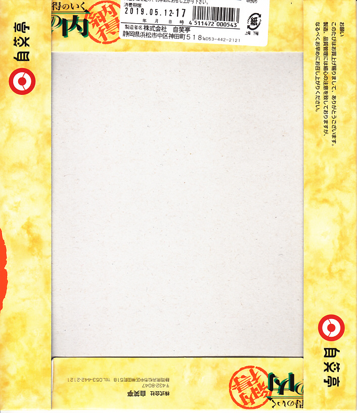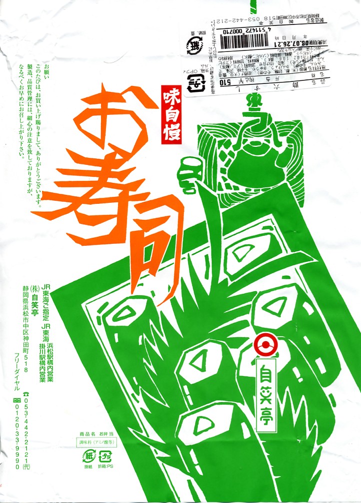 2003(平成15)年12月22日に購入した、浜松駅弁のふた。絵柄も容器も中身も、2022年のものと変わらない。