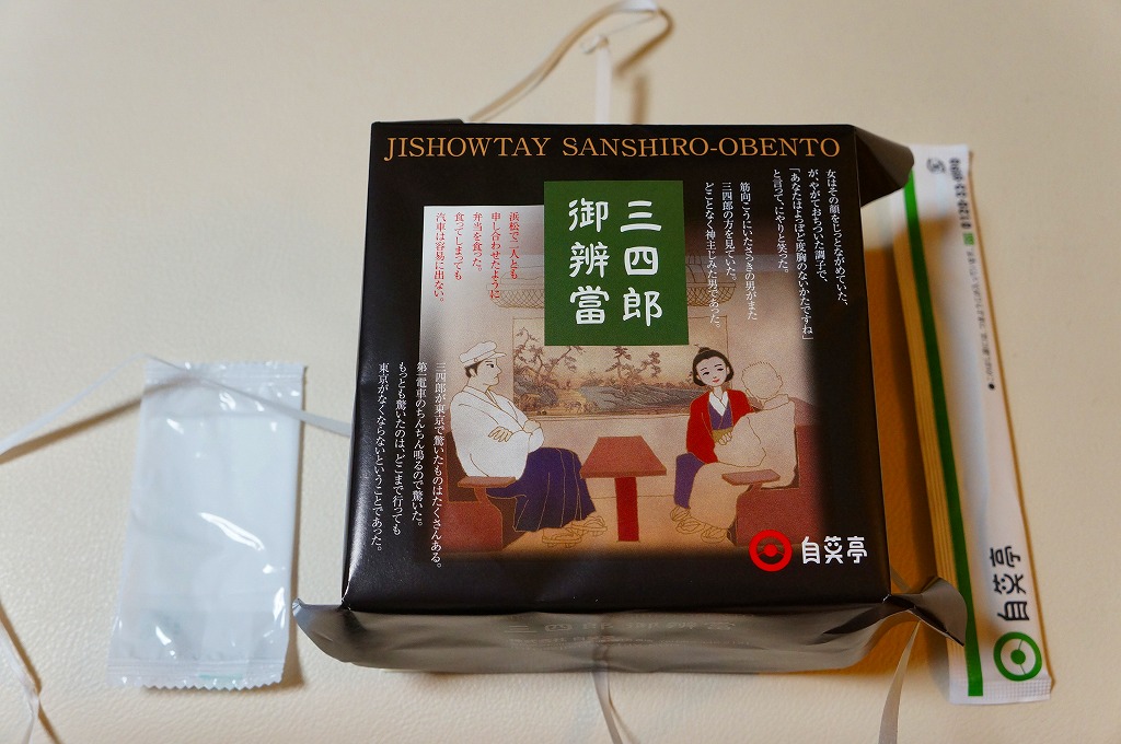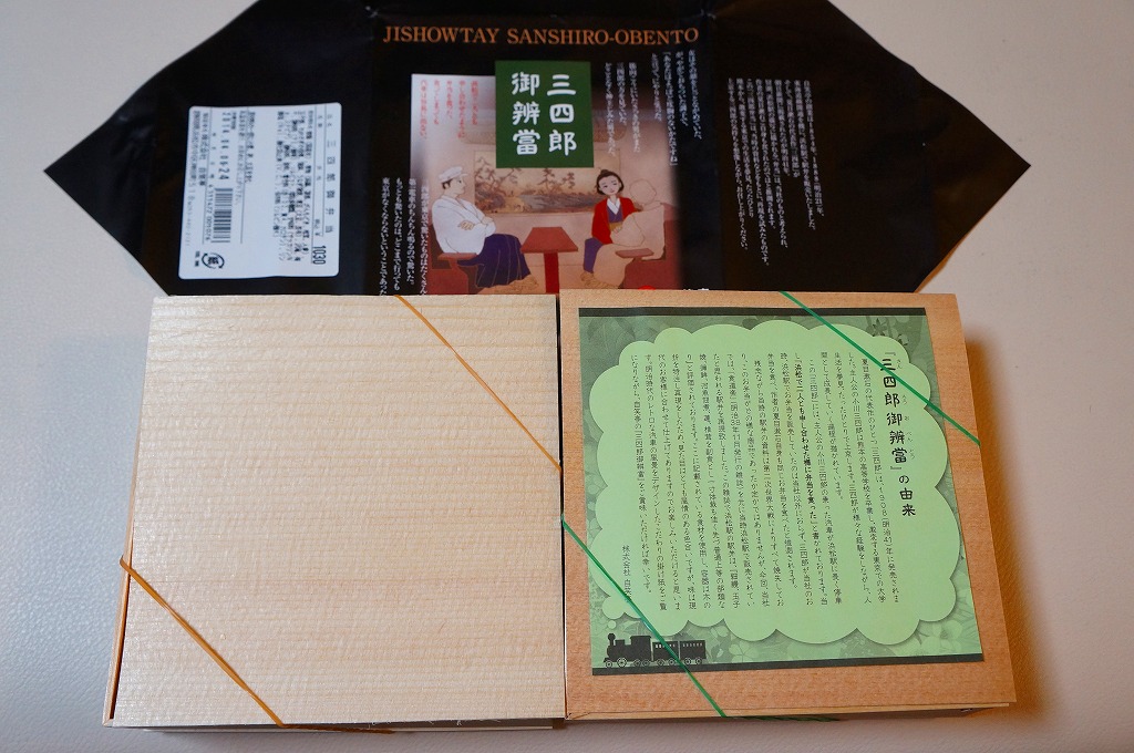 2011(平成23)年9月の発売。夏目漱石が1908(明治41)年に発表した作品「三四郎」に、汽車に乗り浜松駅で弁当を食べた描写があることから、当時の浜松駅で売られた駅弁の再現を試みたものである。薄い正方形の経木折をふたつ重ねる使い方は、明治時代から第二次大戦前まで、全国各地の幹線鉄道の駅弁で親しまれた姿である。