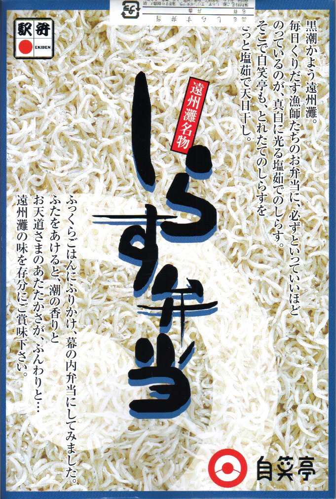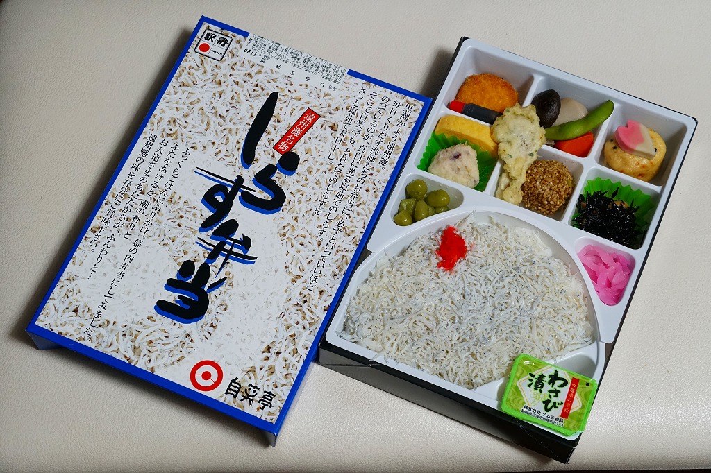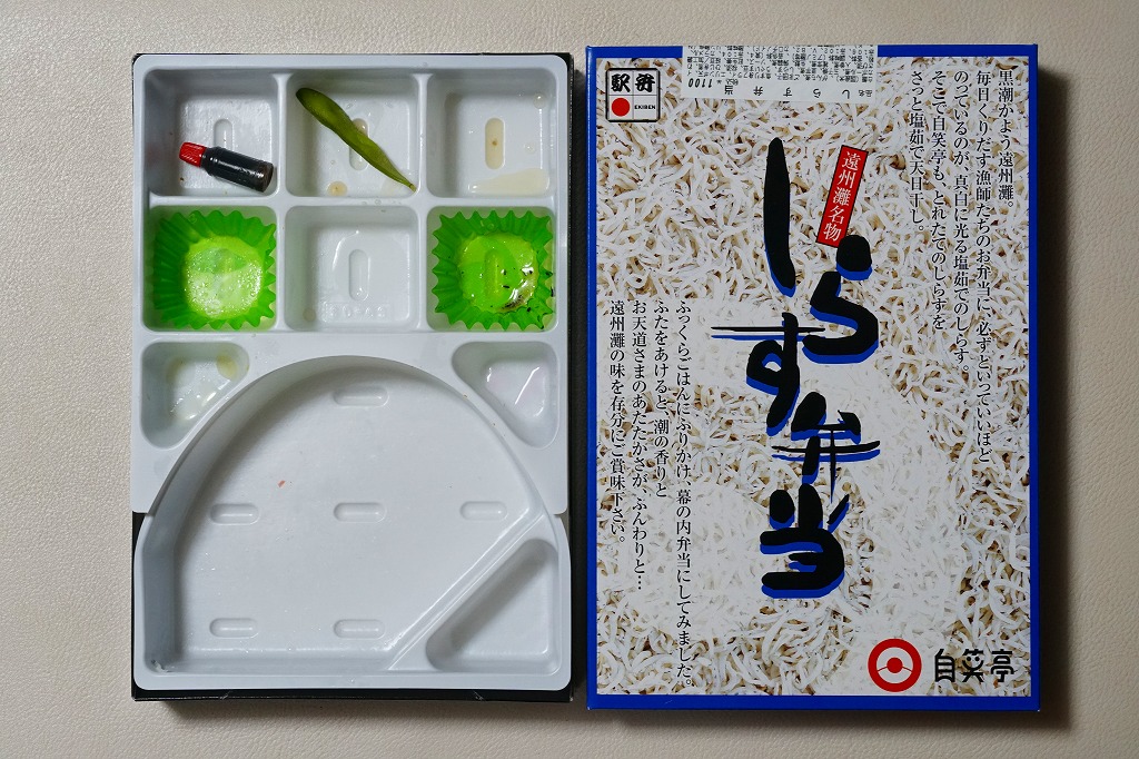 駅弁で時々見掛けるシラス弁当の元祖格か。2010年代にウナギの暴騰でうなぎ弁当が容易に買えなくなってからは、浜松駅弁の主役になった感がある。価格は2003年時点で1,000円、2014年4月の消費税率改定で1,030円、2020年時点で1,050円、2022年の購入時で1,100円。