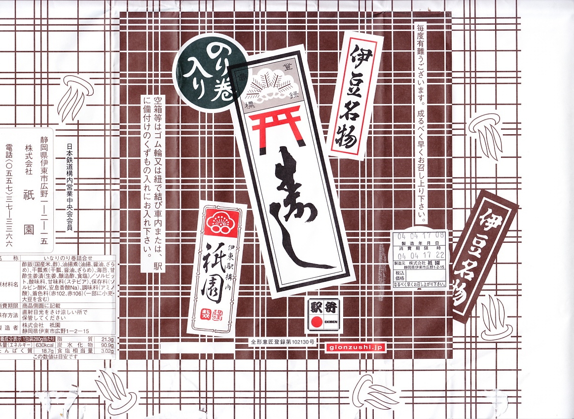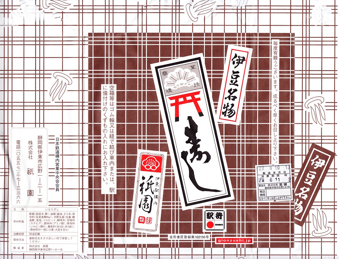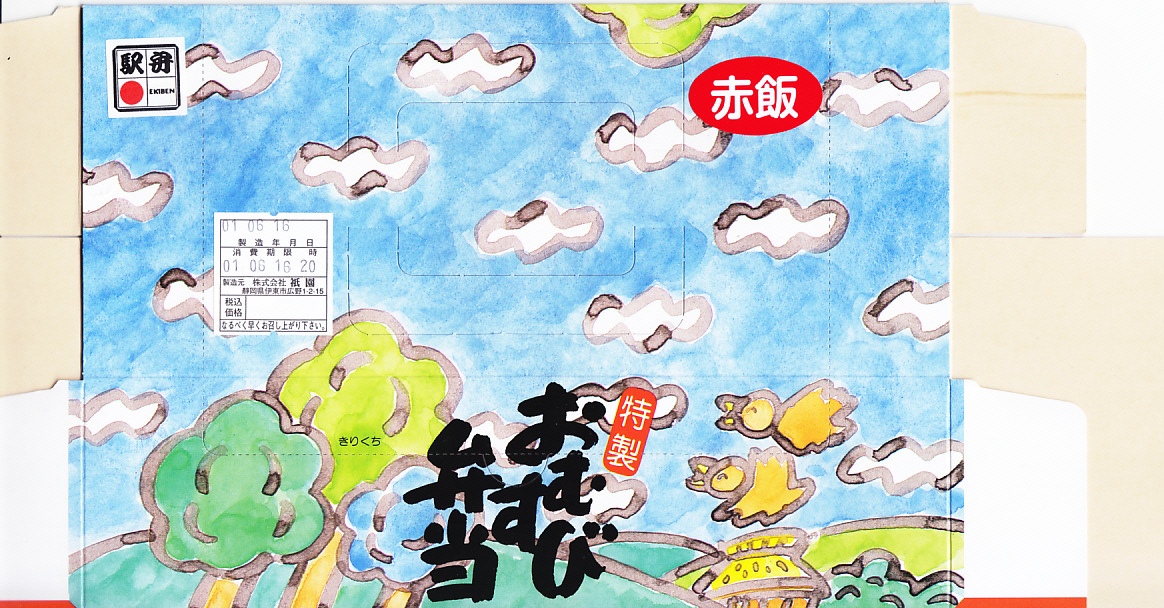 2017(平成29)年6月10日に購入した、伊東駅弁の掛紙。絵柄は昔も今も変わらない。容器も中身も風味も変わらない。法令の強化により食品表示の部分にだけ変化がある。