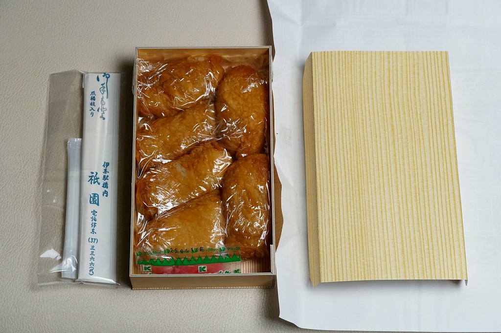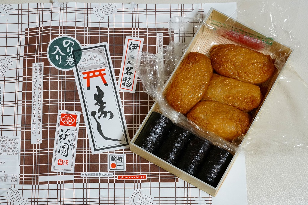上記の駅弁「いなり寿し」の、2021(令和3)年時点での姿。何も変わらない。もし何か変わったら、きっとニュースになる。