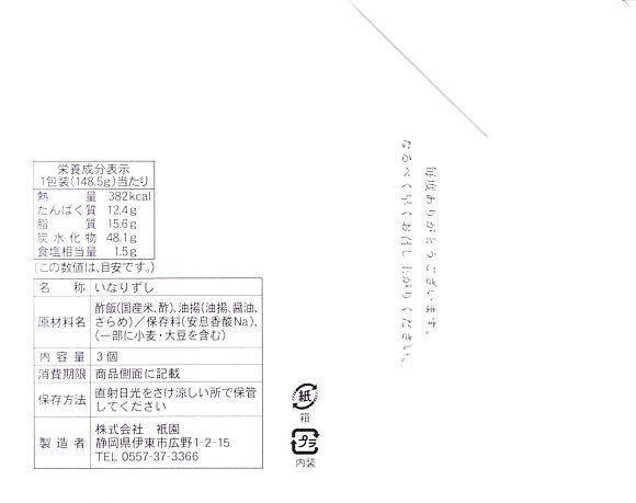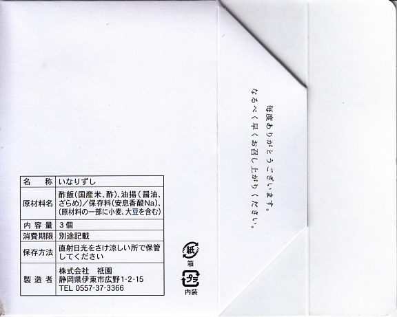【掛紙】いなり寿し(570円)Inarizushi