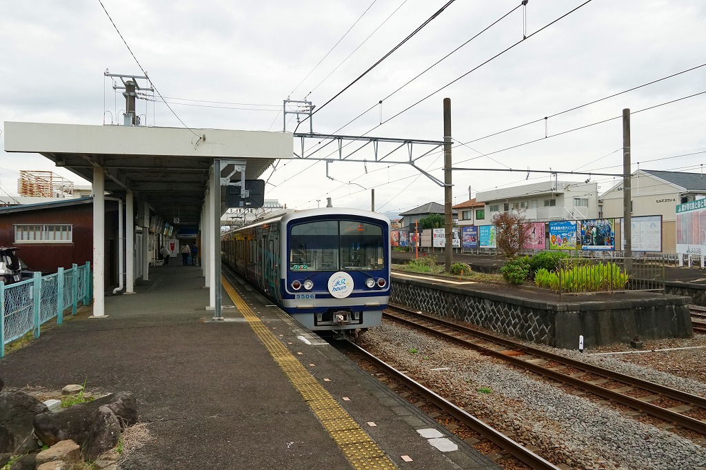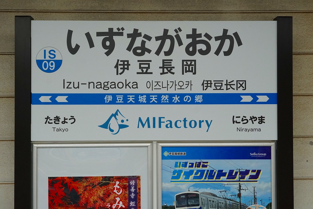 三島駅から駿豆線(すんずせん)の電車で約20分。伊豆長岡温泉へは駅からバスで約10分。伊豆の国市は2005(平成17)年4月に伊豆長岡、大仁、韮山の3町が合併してできた市で、温泉と農業の街。駅弁を名乗る弁当はないが、駅のヤマザキショップで地元の寿司が売られ、これが駅弁のように見えたが、店舗の入れ替えにより2023年までに失われた。1898(明治31)年5月20日開業、静岡県伊豆の国市南條。