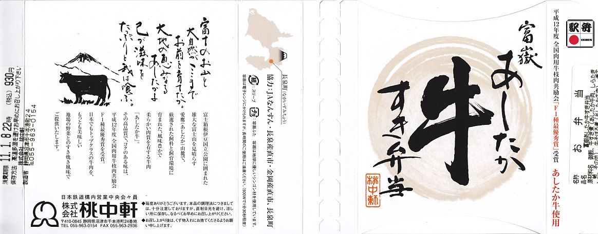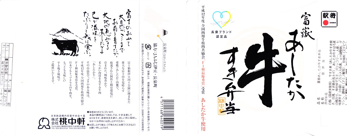 2011(平成23)年1月8日に購入した、沼津駅弁のスリーブ。上記の2024年のものと変わらない。