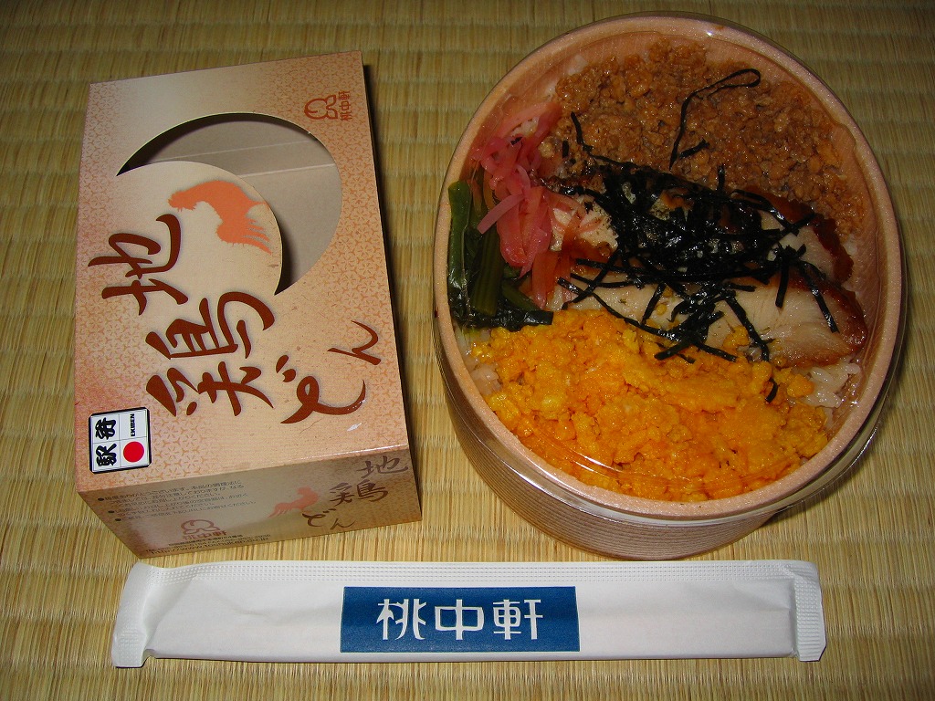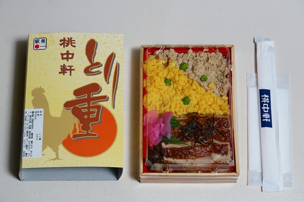 駅弁として見れば、地域色は感じないし、見栄えや容器こそ素っ気ない。しかし鶏照焼スライスと鶏そぼろに締まりがあり、飯もうまく、炒り卵も手作り感いっぱい。鶏飯駅弁として定評のある、高崎駅、大館駅、折尾駅などとは違う方向でうまい駅弁。2008年に上記の駅弁「とり重」へリニューアル。