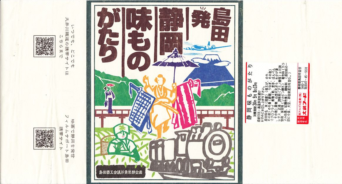島田商工会議所青年部の監修・企画により、2009(平成21)年4月1日に静岡空港の空弁として発売。実際には同日から金谷駅と新金谷駅で販売を開始。価格は発売時にはお茶付きで1,050円。上記の駅弁「大井川ふるさと弁当」と同じボール紙製容器を、島田の自慢や名所名物と思われるイラストをちりばめた掛紙で巻く。