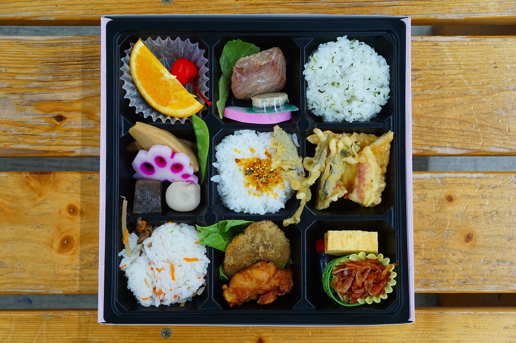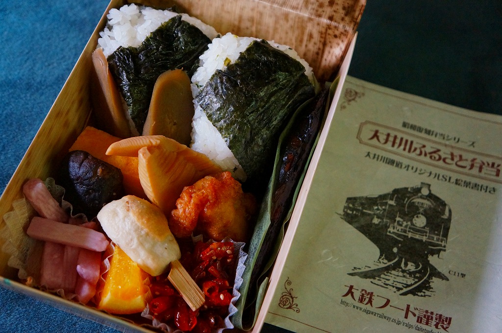2012(平成24)年7月に、夏休み期間限定に予約販売する弁当として発売か。市販の仕出し弁当向けボール紙製容器をそのまま使用、中に詰めた9区画のプラ製トレーに、のり、ふりかけ、五目っぽい三色の白飯、サクラエビ佃煮と玉子焼、山里の天ぷらという揚げ物、かまぼことマグロ照焼とわさび漬、鶏唐揚と黒はんぺん揚げ、サトイモやタケノコなどの煮物、オレンジとさくらんぼを詰める。駅弁というよりはむしろ、SL列車に乗りに来る客などの、団体向け仕出し弁当という雰囲気。価格は2012年の発売時で1,150円、2014年時点で1,200円、2019年時点で1,250円、2022年4月から1,300円。