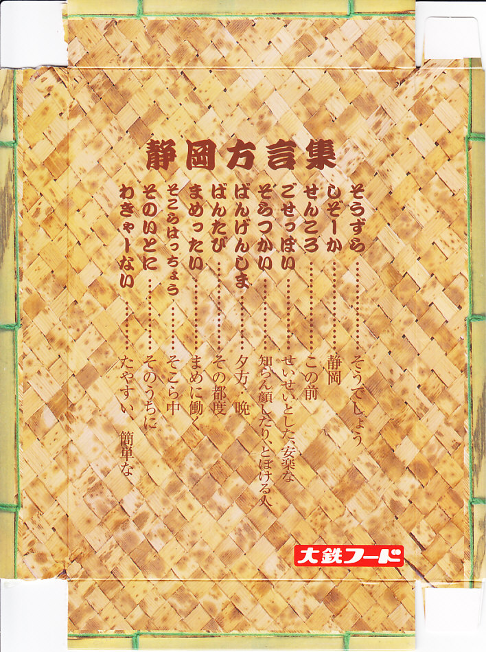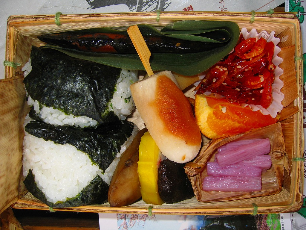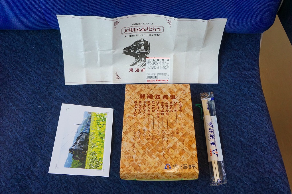 2004(平成16)年度に発売。静岡の方言を記した竹皮編み柄のボール紙製容器に、SL列車の絵はがきを1枚添えて、SL列車の写真でデザインした掛紙を巻く。中身はおにぎり2個、ヤマメ甘露煮、タケノコやシイタケなどの煮物、サトイモ田楽、鶏唐揚、サクラエビ佃煮、ヤマイモ、オレンジなど。見た目どおりの味。この体裁はSL列車にも似合う。価格は2012年時点でおそらく950円、2013年時点で缶茶付きで1,050円、2014年4月の消費税率改定で1,100円へ値上げ、2017年時点で本体のみ1,080円、2019年時点で1,150円、2022年4月から1,200円。