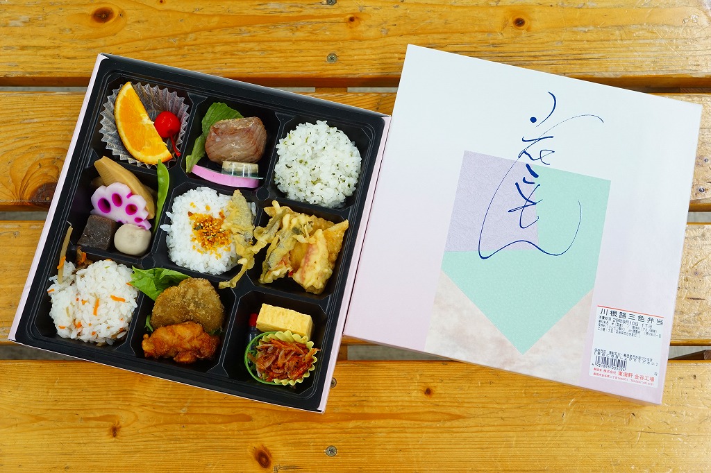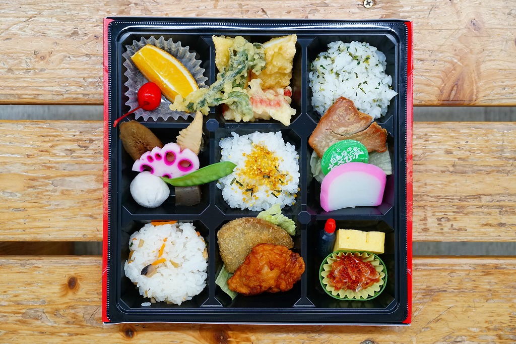 2016(平成28)年までに発売か。既存の「大井川ふるさと弁当」と同じような絵柄の掛紙で、大きく平たい容器を包む。中身は日の丸御飯に7区画のおかず、エビフライやローストチキンやマグロ照焼と玉子焼とかまぼことタラの芽天、ナスピーマン味噌、黒はんぺん揚げとわさび漬、サクラエビ佃煮、五目豆、抹茶わらび餅。下の「川根路三色弁当」や「味くらべ」と同じようなものが入るお弁当。価格は2017年の購入時で1,150円、2019年時点で1,200円、2022年4月から1,250円。